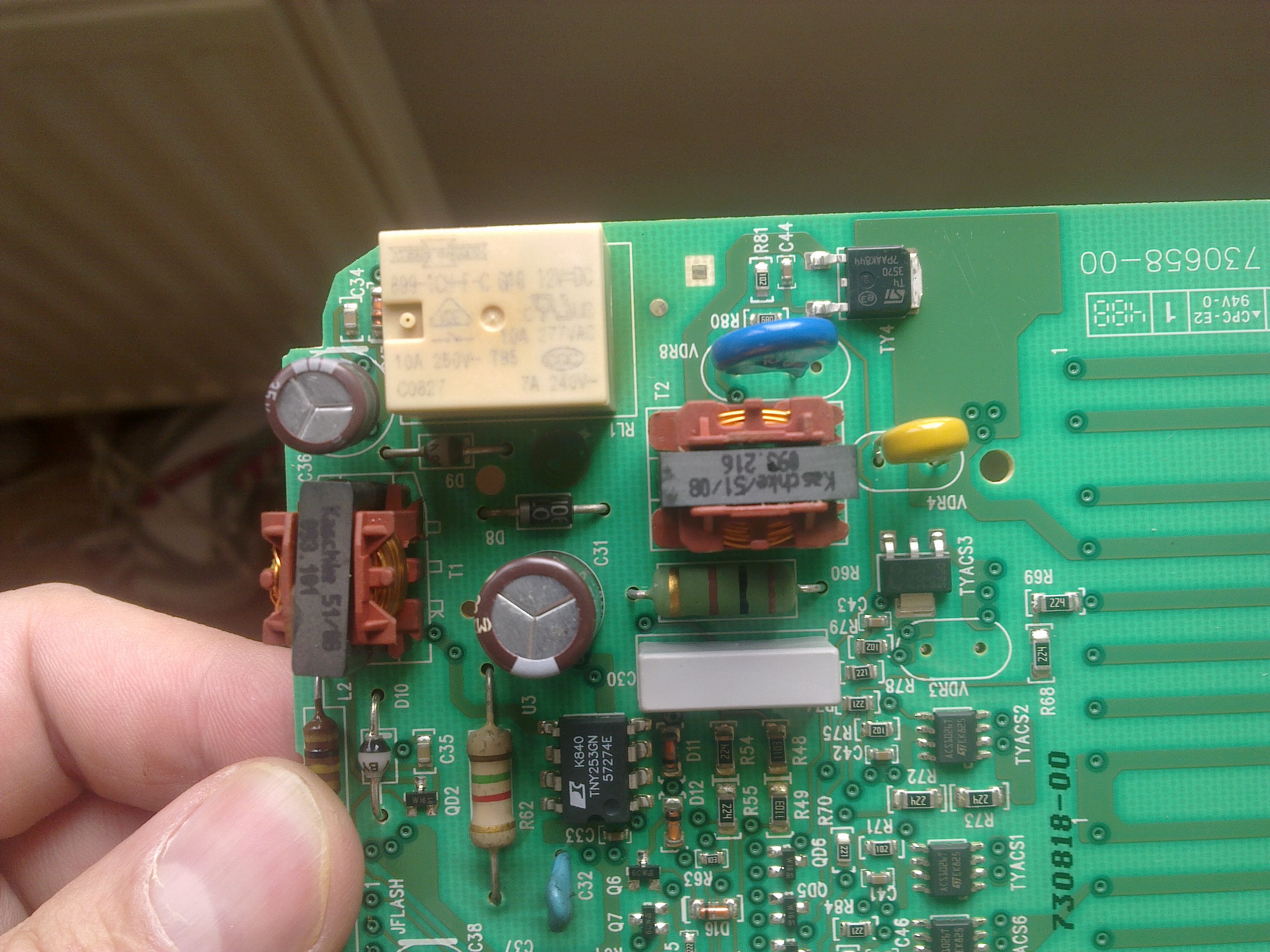 Takže jestli je tachodynamo špatné a i když tam přivedu odjinut 9V a topná spirála stále nehřeje, musí být problém i někde s nějakým relátkem - řídící jednotka na které jsou 3 relátka prostě nepustí proud do top. tělesa. Nějaké relátko bude tedy mrtvé.