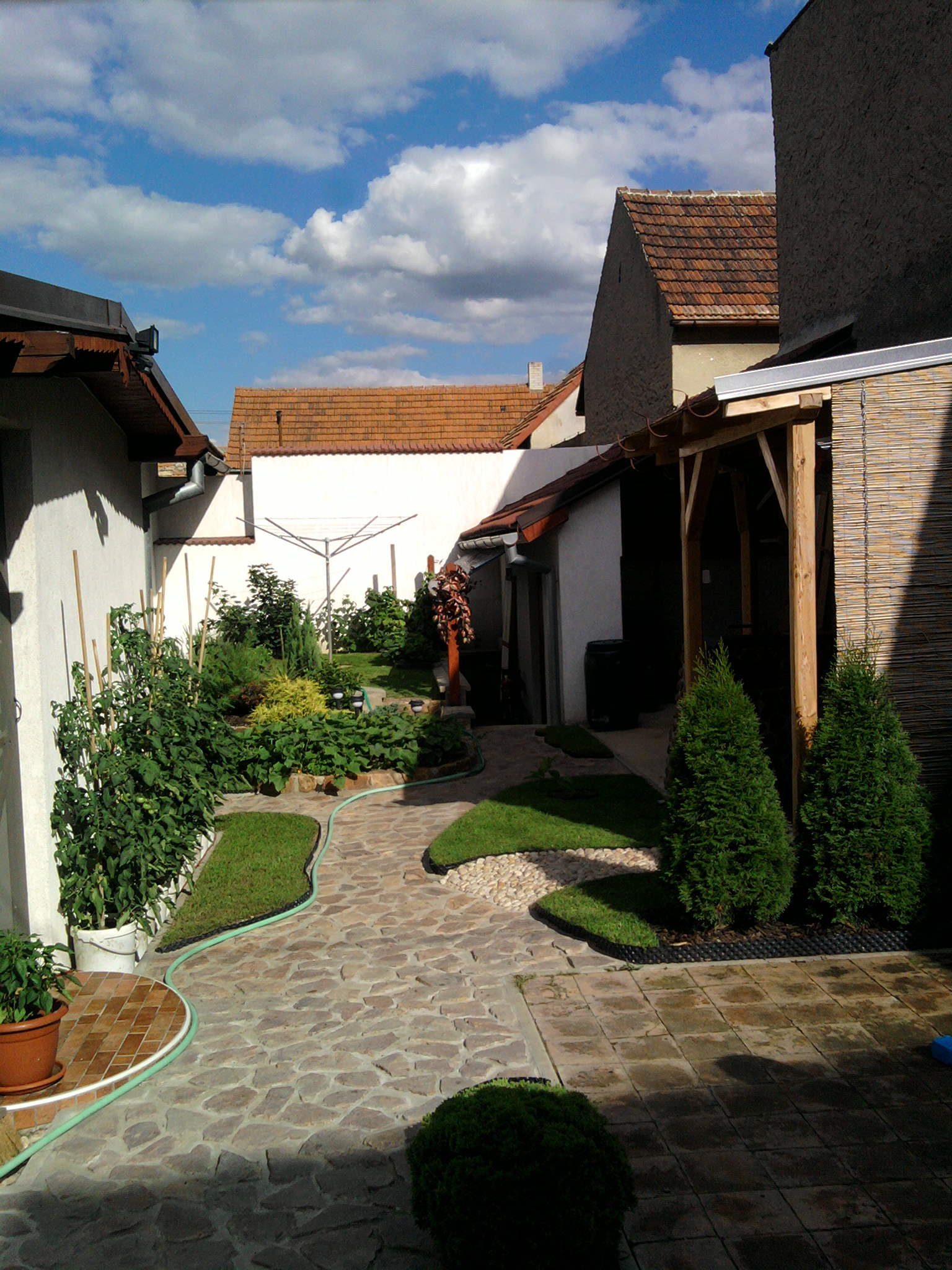 Cementem nešetřit, směs spíše hustší, nebát se pořádně vyplnit spáry i s přebytkem. Ve finálové fázi po schnutí několik hodin, nesmí zcela zatuhnout,-špachtlí vyškrábat přebytek směsi do požadovaného tvaru. Nakonec omést a štětcem namočeným ve vodě uhladit.