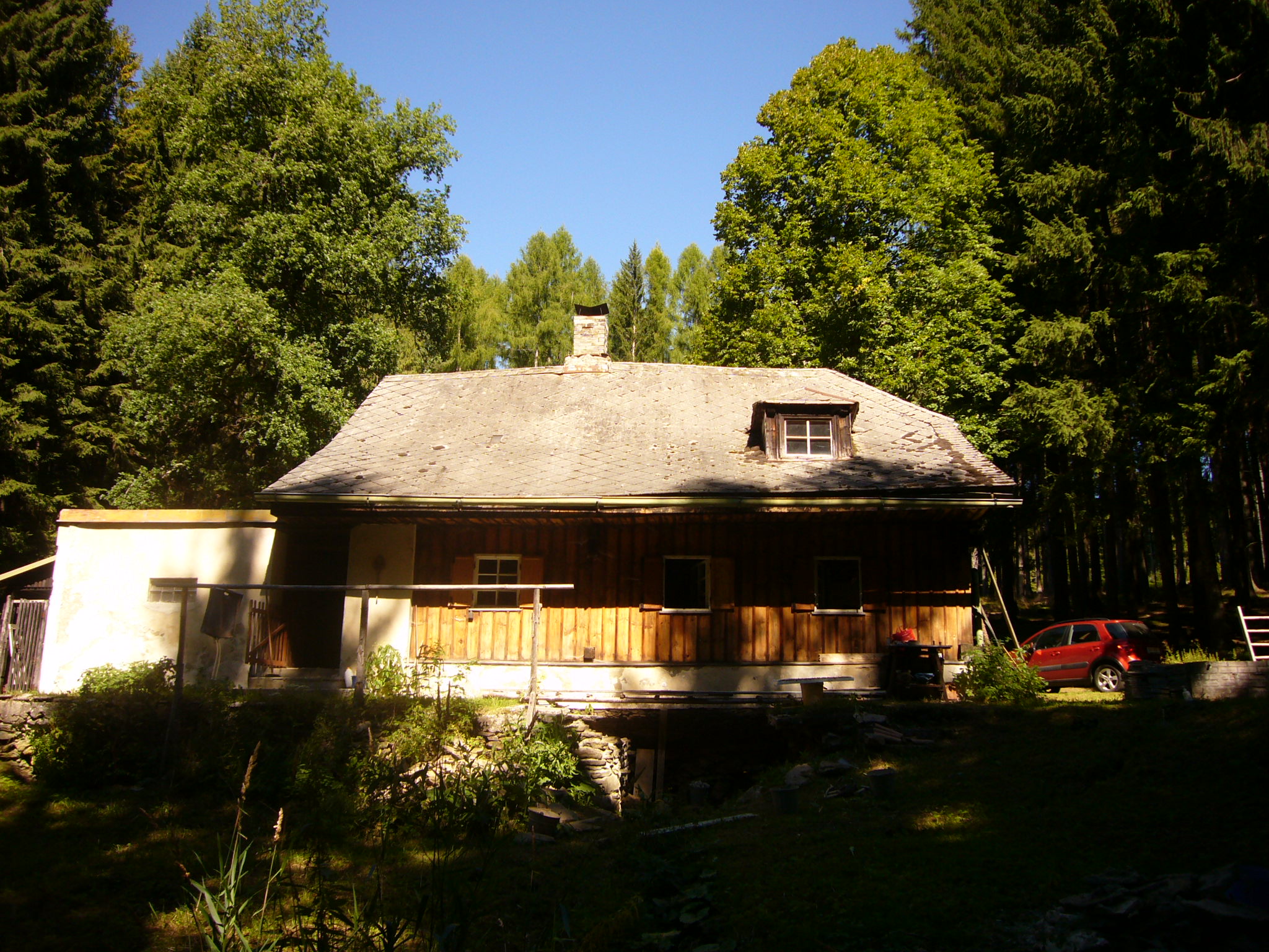 Jak jste si již asi domysleli, můj problém spočívá v tom, že investice, kterou do střechy bezprostředně mohu vložit, se pohybuje spíše v desítkách, nikoli stovkách tisíc. V současné chvíli investujeme do přestavby bytu v Praze a do větších akcí typu výměny celé krytiny se nám nechce také proto, že do deseti let plánujeme celé nadzemní patro i podkroví chalupy strhnout a rekonstruovat, a jakákoli nynější opatření tedy chápeme jako dočasná. (Navíc, cena ekologické likvidace eternitu, i když za všechno, co již v lesích zažil, bude nejspíš totálně vyprchalý, se podobá ceně nové krytiny.)