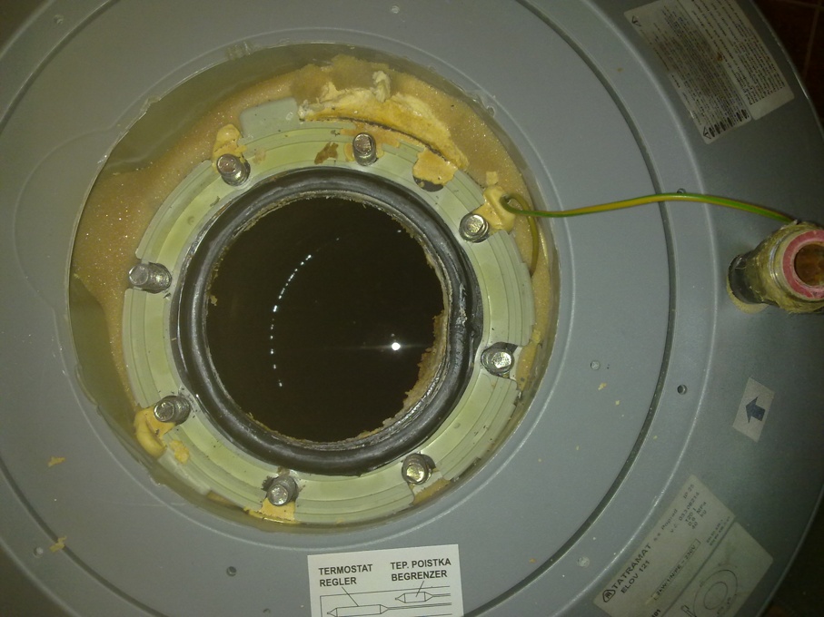 těsnění. Uvnitř vypadá boiler vizuelně v pořádku-bez známek rzi, anodová tyč byla měněna asi před dvěma lety.