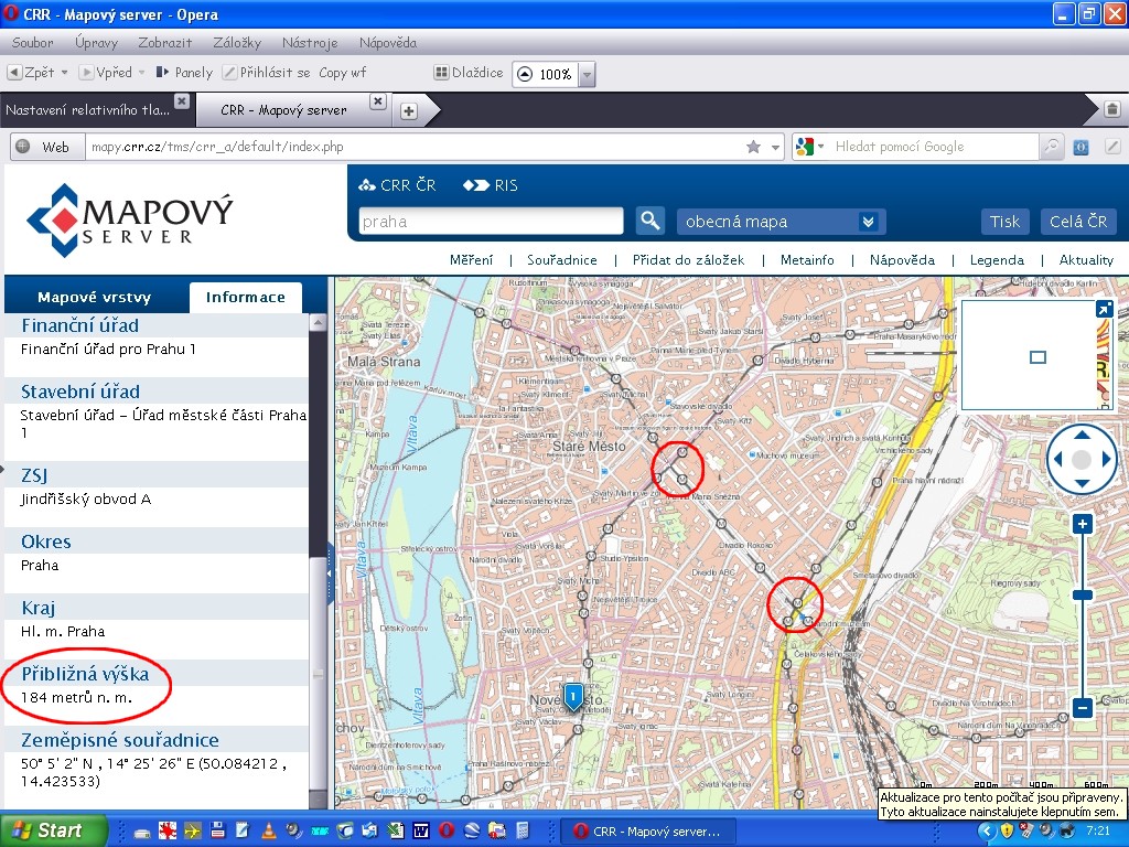 ...a obrázek jak to funguje : klikni na václavák dolní část můstek (cca 182 m/n m) a horní část "u koně" (cca 212 m/ n m)