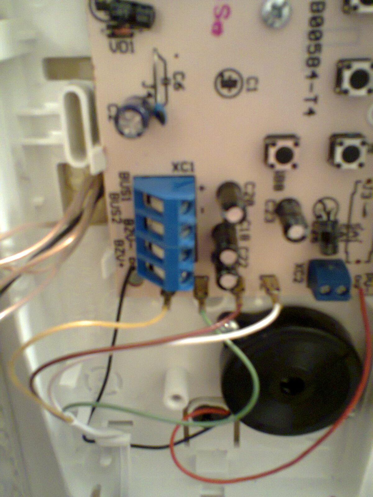 pokud je to na sběrnici, tak na dvou drátech bude asi 12V ty dát podle polarity na svorky a druhé dva na data BUS-A BUS-B po případě otočit B-A. Ten telefonek ale taky třeba nemusí být naprogramovaný (naswitchovaný)když nebyl připojený.