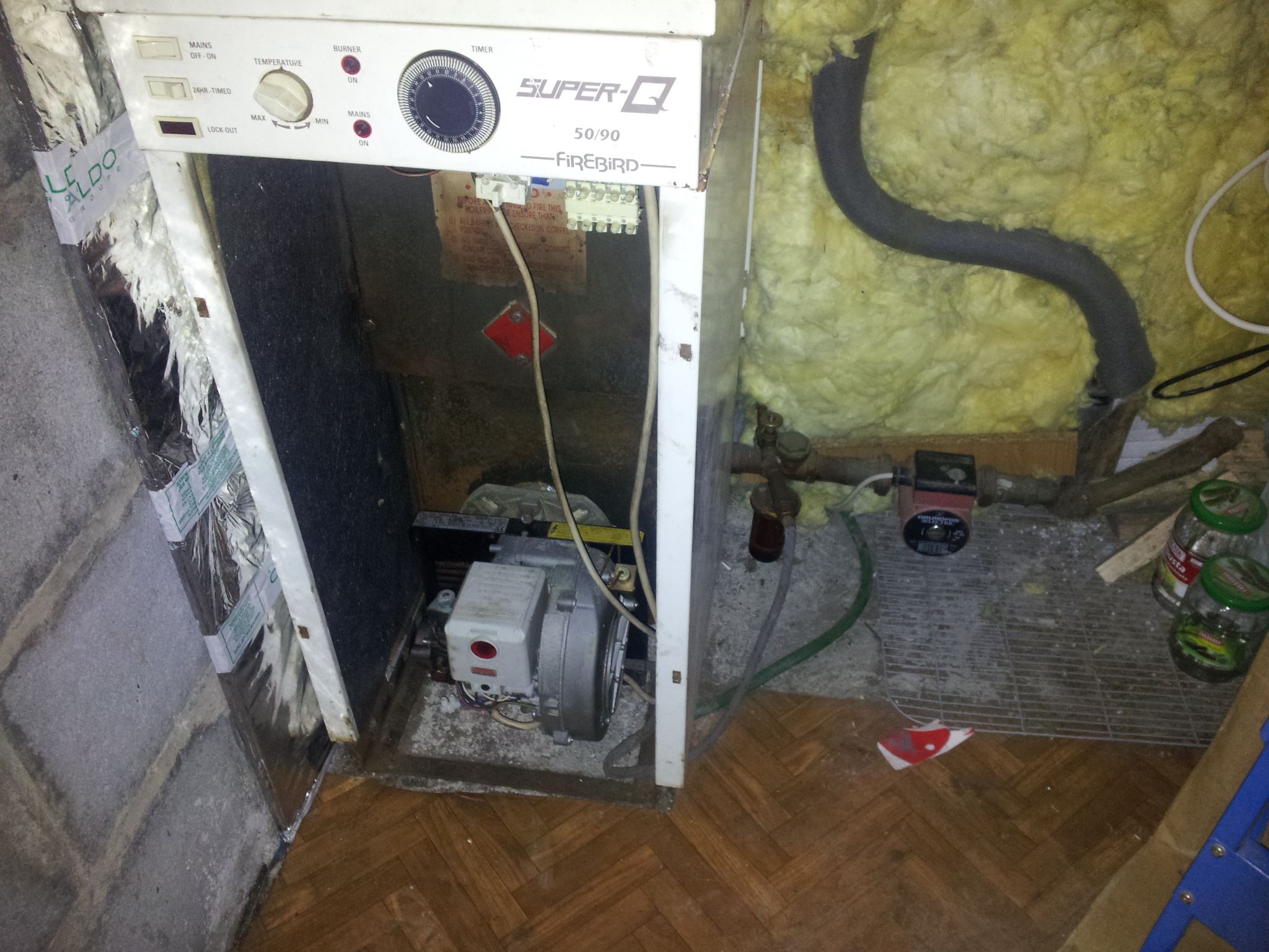 Začal bych asi takhle - máme rodinný domek, zahradu a malý zděný domek na zahradě. Ten je na nářadí a další věci a právě v tomto domku máme umístěn kotel, vedle kotle je oběhové čerpadlo a kotel je pevně zapojen do elekktriky (ne do zásuvky). Venku vedle domku je velká plastová nádrž na topný olej(objem cca 1000 litrů), která je propojena trubkou ke kotli. Na nádrži je manuální ventil, kterým se dá pustit nebo zastavit přívod oleje do kotle. V kotli je hořák s tryskou, která vstřikuje olej. Hořák je připevněn na nějakou komoru, která se zahřívá. Pokud je komora teplá, bere to tak o polovinu míň oleje než když je studená. Kotel je propojen do domu, zřejmě nějakou trubkou, která je v zemi. V kuchyni je timer kde se dá nastavit čas na 2x denně, nebo aby to jelo nepřetržitě nebo vypnuto a nebo konstant což je propojeno s termostatem, který je umístěn na druhém konci kuchyně. Pokud je timer nastaven na konstant a sepne termostat tak tryska v hořáku začne vstřikovat olej a začne běžet kotel. Pro lepší představivost ještě přikládám nějaké fotky.