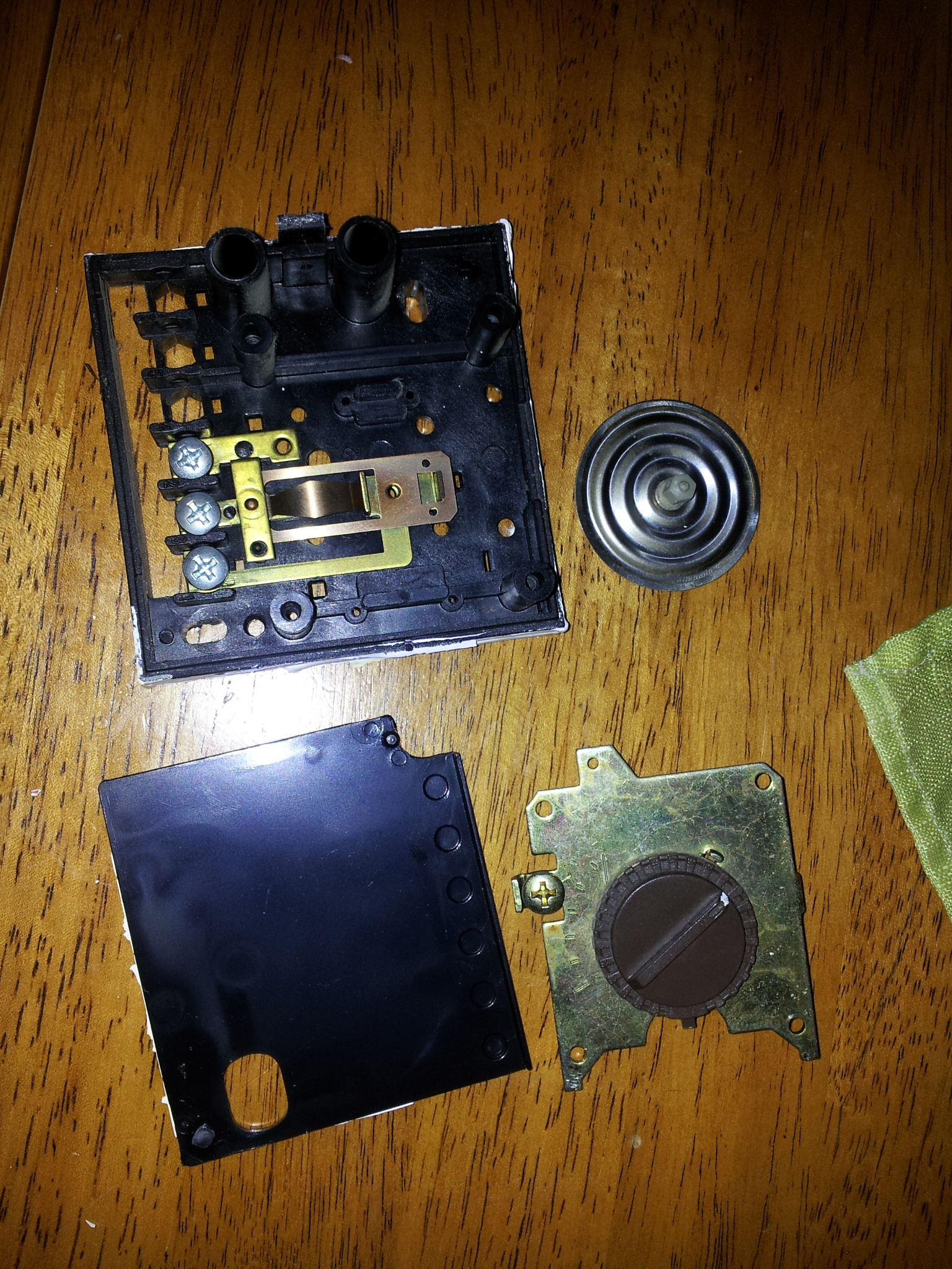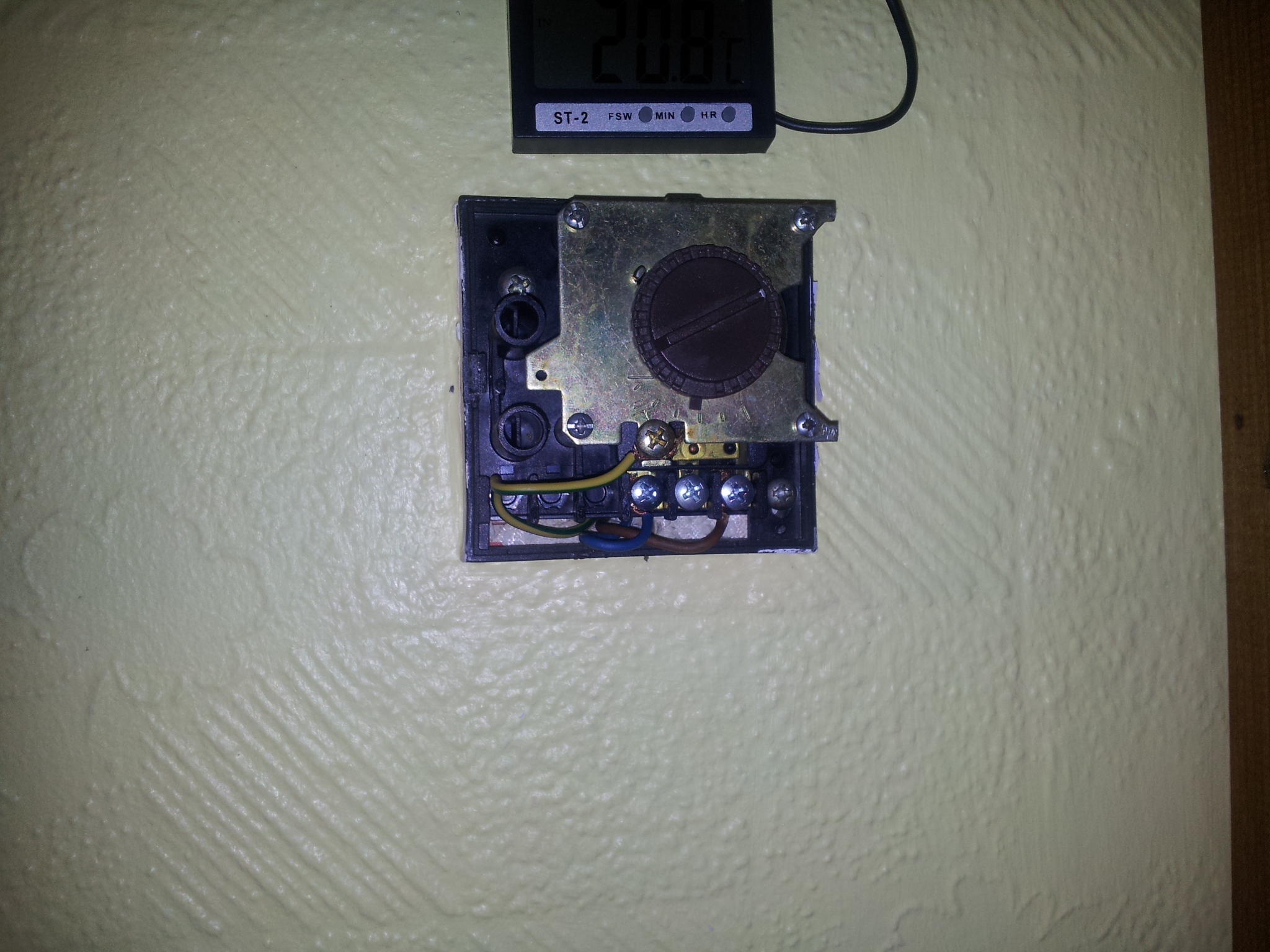 No zvláštní to asi je já vím, ale důležité je jestli to bude fungovat. Když se totiž zapojí nulák a fáze na vstup tak co se potom zapojí na výstup? Řekl bych, že to relé spíná a rozepíná právě ty výstupní svorky( Ale jak jsem již psal nejsem odborník, takže se nezlobte jestli se mýlím.) Tady posílám ještě fotku našeho termostatu po sejmutí krytu.: