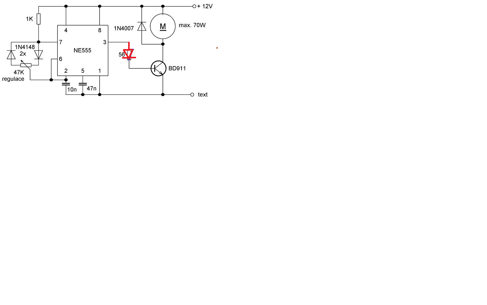 když obvod zapne a potenciometr je nastavený na max. otáčky tak to jede, jde to regulovat do pomalejších otáček a když je to na minimu a motor se zastaví a pak ho zas chci rozjet, tak to chcípne a motor jen vrní a tranzistor se začne přehřejvat