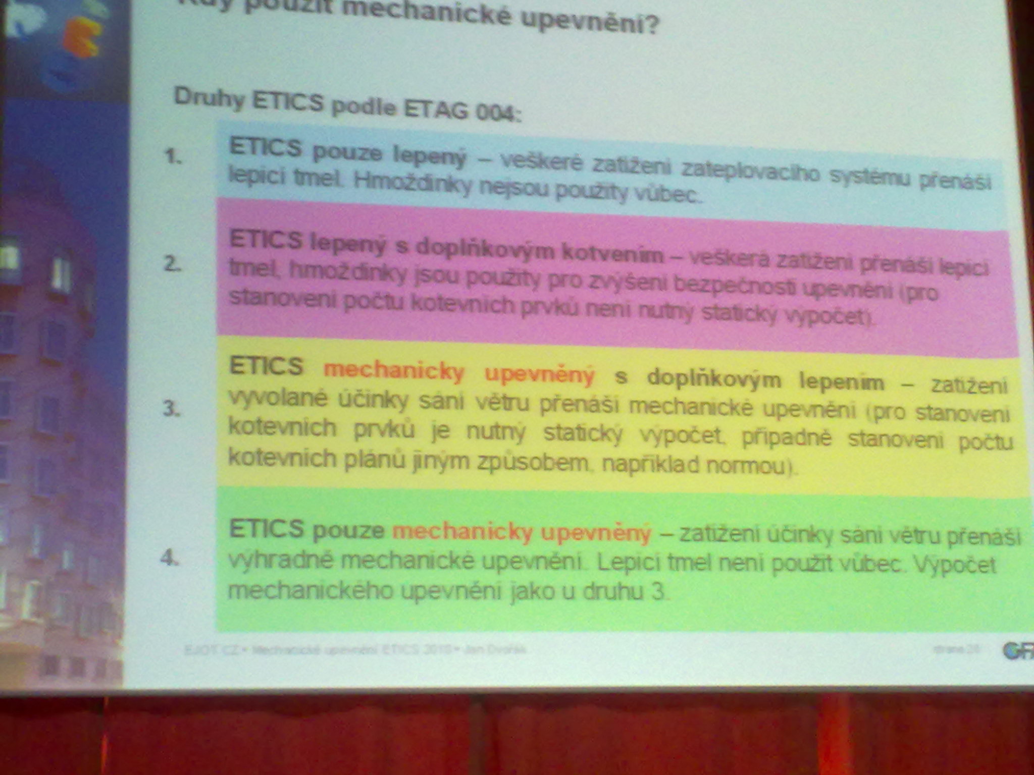 Skutečnost bývá jiná, dle předpisu ETAG 004 se nemusí používat hmoždinky (do 8 metrů)