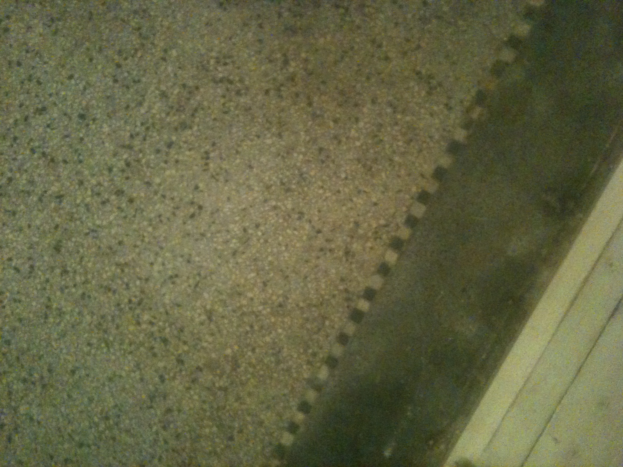 Krásná práce někdy ze 30. let minulého století. Podlaha v koupelně bývala vyspádovaná ke kanálku uprostřed podlahy, ale hodně studená a kluzká, úplně hladká. Je otázka, jak se s ní další vrstva spojí, asi by to chtělo tu původní (zamáčknout slzu lítosti nad zničením krásné poctivé řemeslné práce) přebrousit, zhrubnout a pak teprve na ni dávat nějakou vyrovnávací vrstvu.