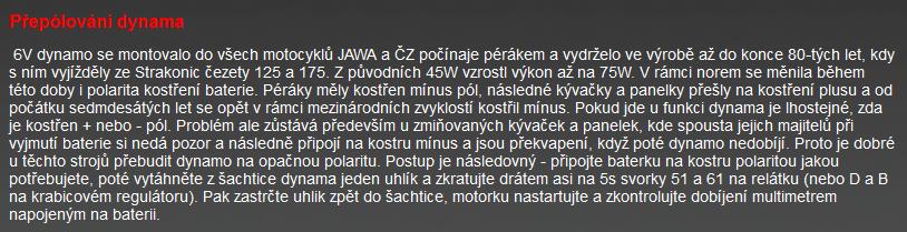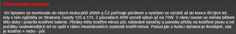 Myslím, že JAWA dělala + na kostře kvůli opalování kontaktů v zapalování. Přepólování dynama musí př…