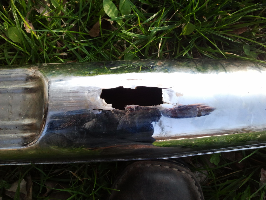 Zdravím. Všiml jsem si nedávno, že se pravý výfuk kývá i když byly šrouby které ho drží na rámu pevně dotažené. Po odmontování jsem zjistil, že je v tom místě popraskaný. Bohužel, stačilo potom mírně zabrat a kousek železa se dvěma maticema vypadl úplně ven. Druhý výfuk drží stále pevně. Nevím proč k tomu došlo. Asi výrobní vada? Výfuky nejsou moc staré, jen pár let, ale nejspíš to nejsou orig. od Jawy. Přikládám foto. Šlo by to nějak spravit? Navařit tam něco, co by zakrylo díru a byla možnost to znovu uchytit? Nebo je to na vyhození?