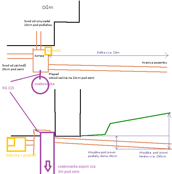 muzes nekde udelat po trase treba i prepadovou mensi nadrz a kalovku dat tam. je to sice drazsi zalezitost a chce to castejsi udrzbu ale nebudes mit problemy se zvedavymi sousedy potazmo ze spodni vodou a jeji pripadnou kontaminaci