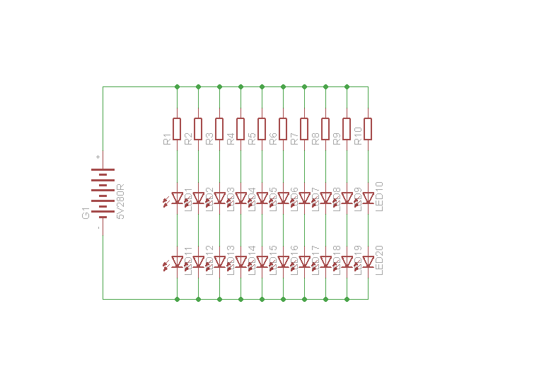 Ak najdes 2mA LED a z baterky chces aby zrali 20mA dohromady, tak mozes zapojit 10 takych clankov jak som kreslil hore, t.j. 10 dvojic LED.