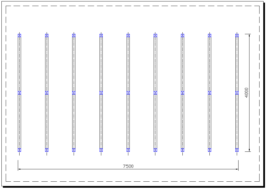 Trochu jsem si to nakreslil, rozestup trámů jsem zvolil 85 cm a pod každý trám dlouhý 4 m jsem zvolil 3 betonové patky - na obou kocích a uprostřed. Vychází mi celkem 27 patek. Nějak se mi to zdá moc a nevím, kde bych mohl trochu ubrat.