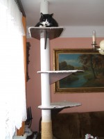 Postavil jsem kocourovi škrabadlo ukotvené na podlaze a na stropě, ještě na něm byla tři odpočívadla. Použil jsem lepenkovou trubku, na které mají v prodejně namotaný koberec. Když slušně požádáte, určitě rádi vyhoví - alespoň se toho zbaví. Spodní část byla omotána lanem o průměru cca 10 mm. Pozor, provaz musí být sisálový, na umělině si kočka může zatrhnout nebo zlomit drápek. Pokusím se dát sem foto.