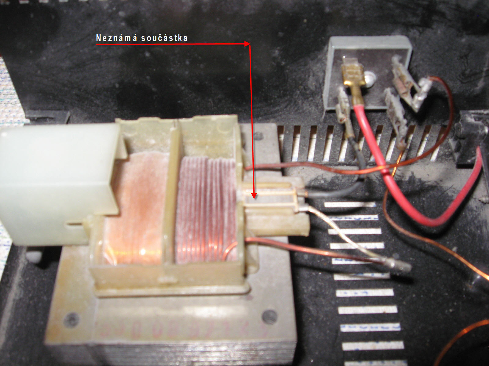 Kontroloval jsem trafo, dává na výstupu asi 12V střídavých bez zatížení. Na trafu je mně neznámá součástka (nemá žádné označení), kterou když překlenu, pak nabíječka dává 12V stejnosměrných. Tato součástka je propojena mezi trafem a můstkem. Domnívám se, že ta mně neznámá součástka asi bude již nefunkční tepelná pojistka, která má chránit trafo před přehřátím. Nebo by to mohl být kondenzátor? Možná ale nemám pravdu.