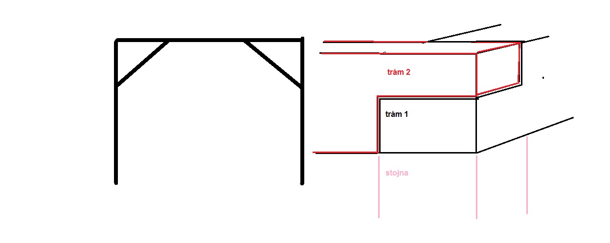 Nie som tesar, takze mi trosku robi starosti statika budy. Predne stojky spaja 5m hranol 10x10, bocne cca 4m. Kolme steny na seba su spojene kovovymi L profilmy s 2 skrutkami na kazdom hranole. Kazdy hranol planujem este vystuzit dalsim medzikusom ako je vidiet pri pohlade zpredu. Rovnake medzikusy cca 20cm pod hlavnym hornym hranolom pojdu aj dozadu aj do bokov. Podla mojho odhadu by prave tieto medzikusy mali branit posunutie v osi X a Y. Trosku som si neni isty ako sa bude celok spravat pri sikmom tlaku mimo X a Y.