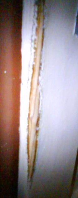 Na dveřích co byly natírané naposled za totality (asi Industrolem) je ohmataná barva až na dřevo. A barva kolem je taková lepkavá, asi od potu nebo mastnoty na rukou.