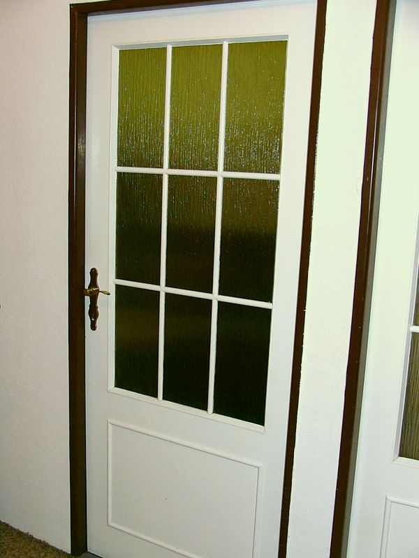 Díky. Jsou to obyčejné, původní panelákové dveře, půlkulaté lišty nalepeny chemoprénem, bakelitové k… poslední