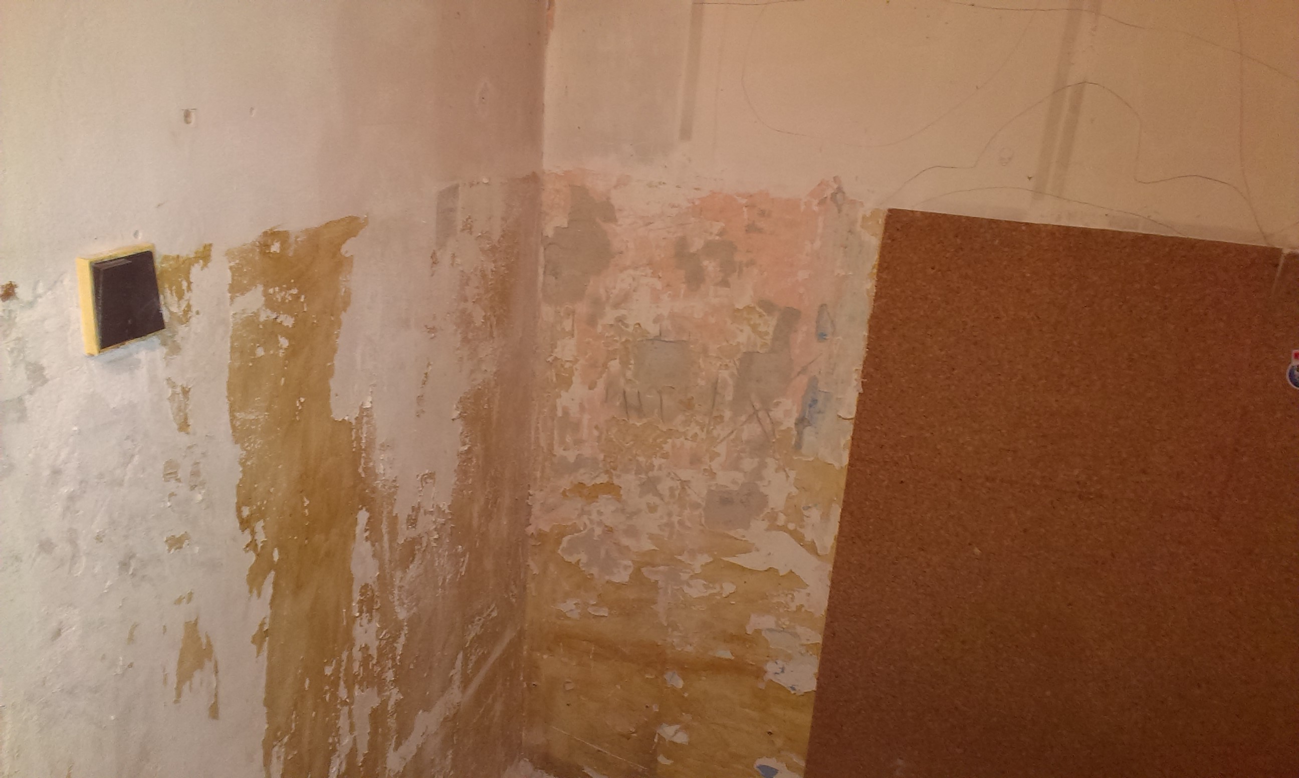 Zdravím. Mám problém a dochází mi nápady. Mám stěnu viz foto, byl na ni nalepený korek hnusným sajrajtem který ani za boha nejde dolů. Už nezabrala horkovzduška, špachtle, šmirgl, prostě nic. Navlhčit zeď a drat to špachtlí je skoro nemožné protože ono lepidlo je nepropustné a voda jen steče na zem. Špachtlí na sucho to už vůbec nejde, klouže po tom jako po másle. Jediné co jde je vzít dlátko a osekat štuk ale i to je morda jako prase a než vůbec oberu tu jednu zeď tak to potrvá dny.