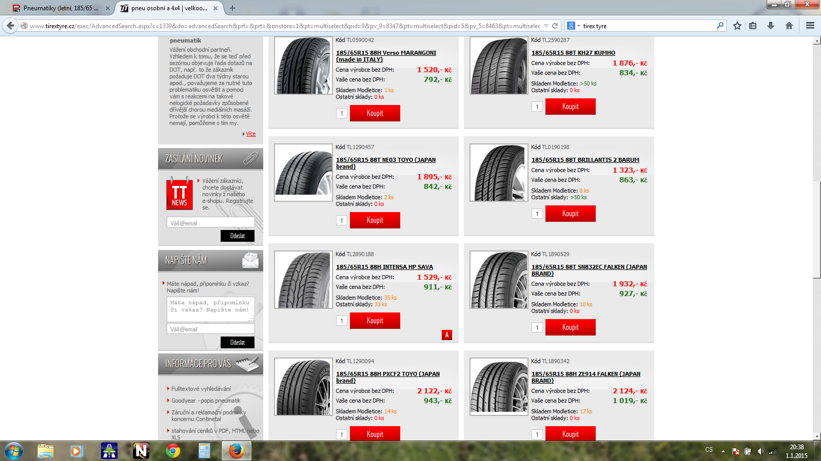 Ono se v lednu těžko hledají levné pneu, ale něco málo existuje.A to ještě nemám tu správnou slevu, protože není léto