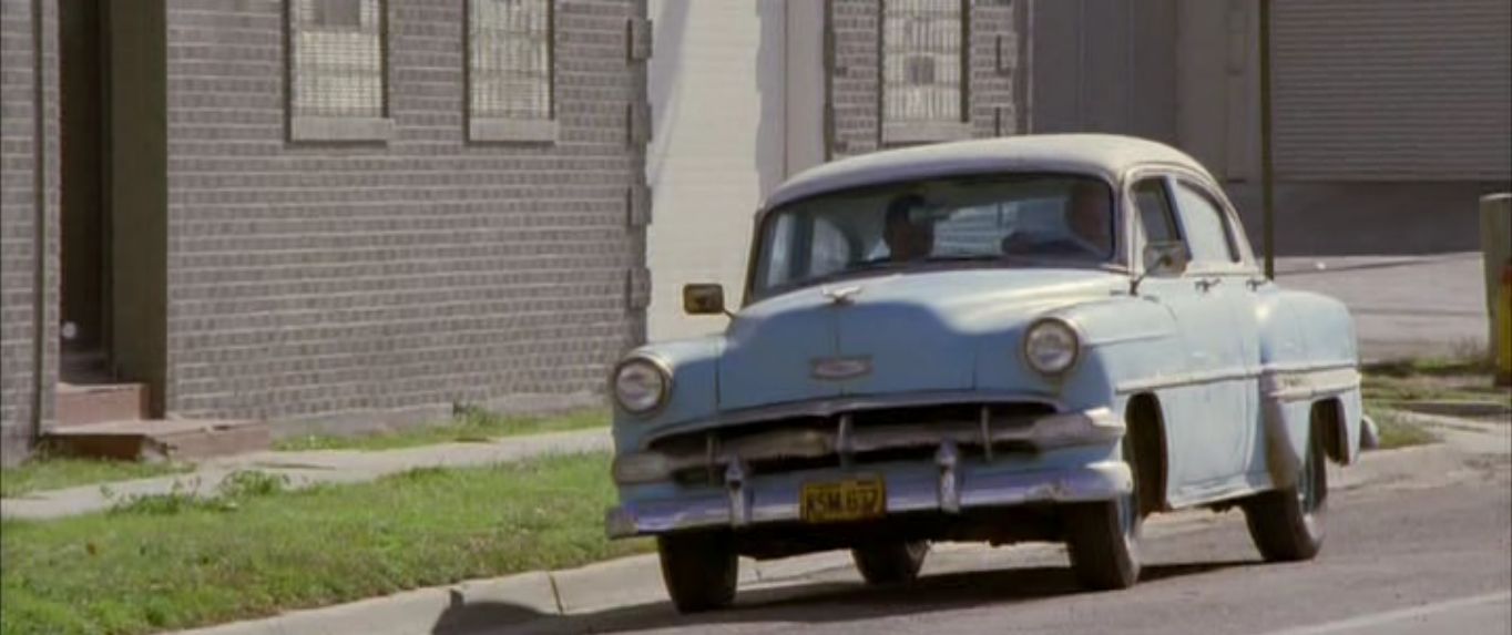 Buick mě napadl jen podle loga na kapotě. Je sice vydřený k nepoznání, ale ten tvar by měl přibližně odpovídat roku 1952, třeba tady je vidět originál: http://commons.wikimedia.org/wiki/File:1952_Buick_ Special_DeLuxe_Series_40D.jpg