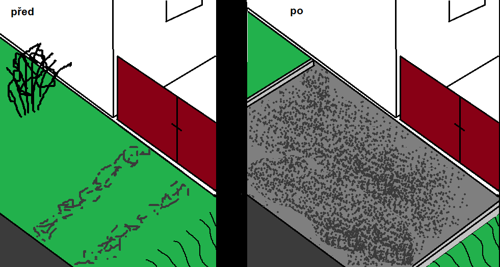 Plochu bych vybral do vhodné hloubky a dal asi deset až patnáct centimetrů frézované.
