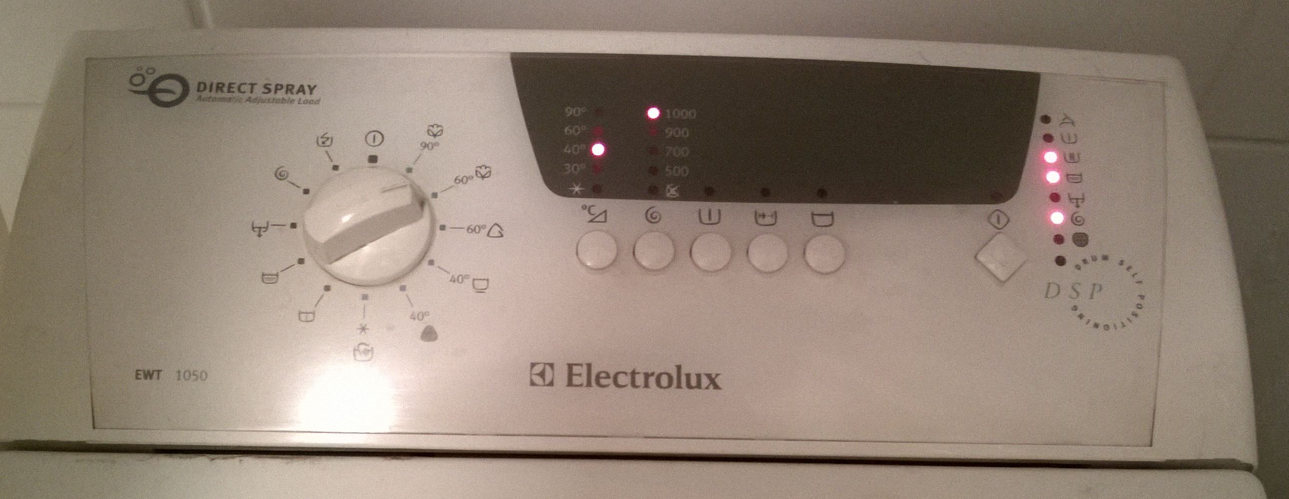 mám následující problém. Pračka Electrolux EWT 1050 (štítek vyfocen v příloze) se teď občas při praní zastaví. Už to udělala několikrát. Manželka jí vždycky pustila znovu, někdy dvakrát a pračka nakonec doprala. Poprosil jsem jí (manželku), aby mi jí (pračku) jednou nechala ve stavu zastavení, abych třeba viděl nějakou chybu, ale podle toho co signalizuje nejsem schopen najít v normálním návodu na používání co to je. Servisní manuál zas nejsem schopen nikde najít ač googlím až se mi od klávesnice práší.