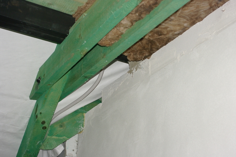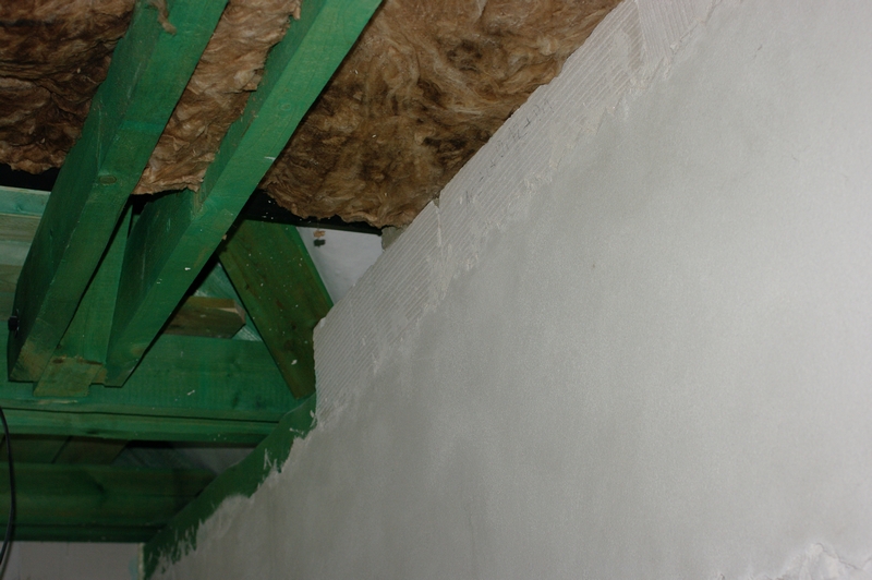 2. a 3 )Takto to vychází v šikmé části střechy - opět první vrstva vaty končí na nosné zdi.
