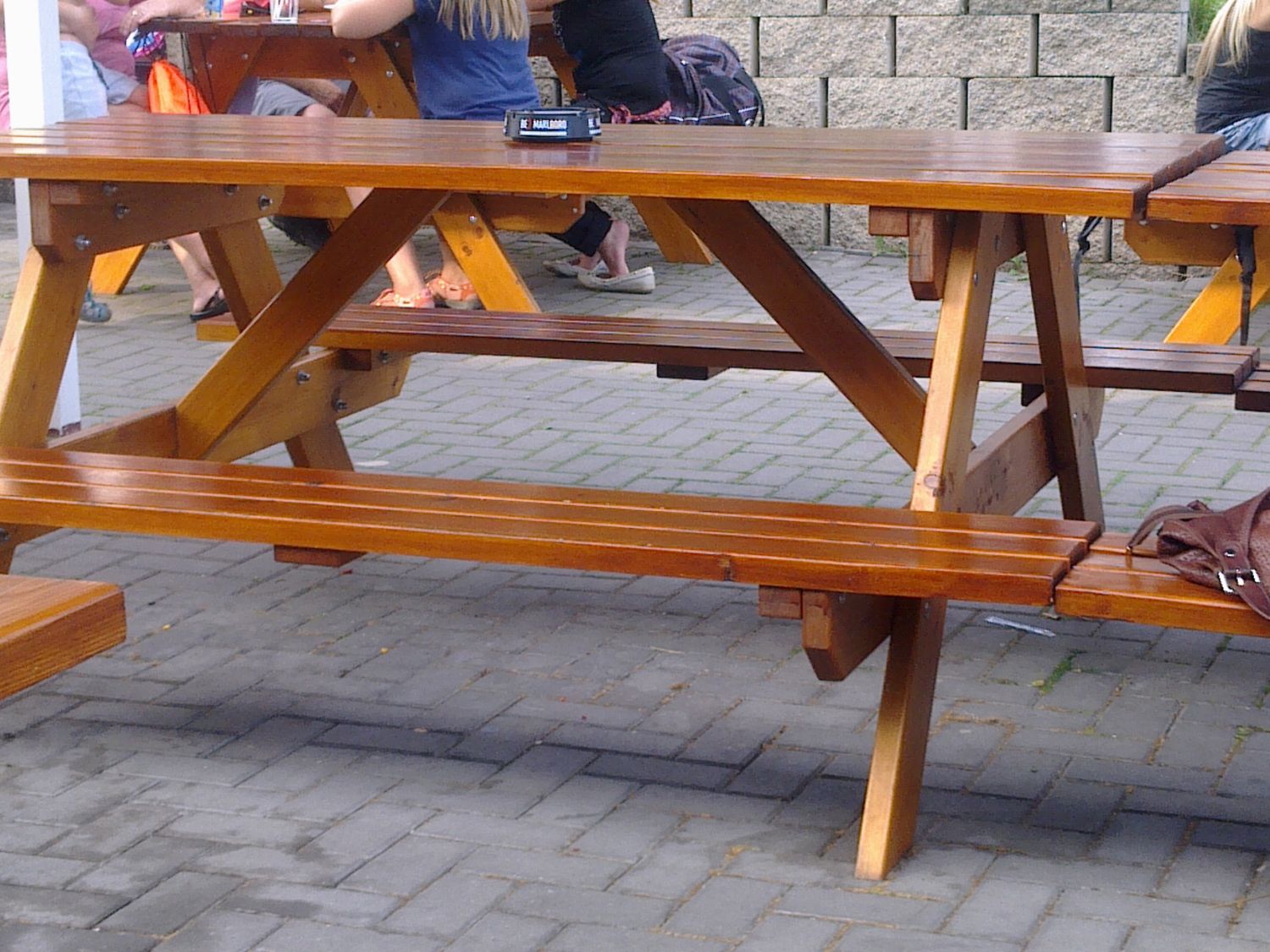 Já bych zahradní stolek rovnou zkombinoval i s lavicí, inspirace v příloze: