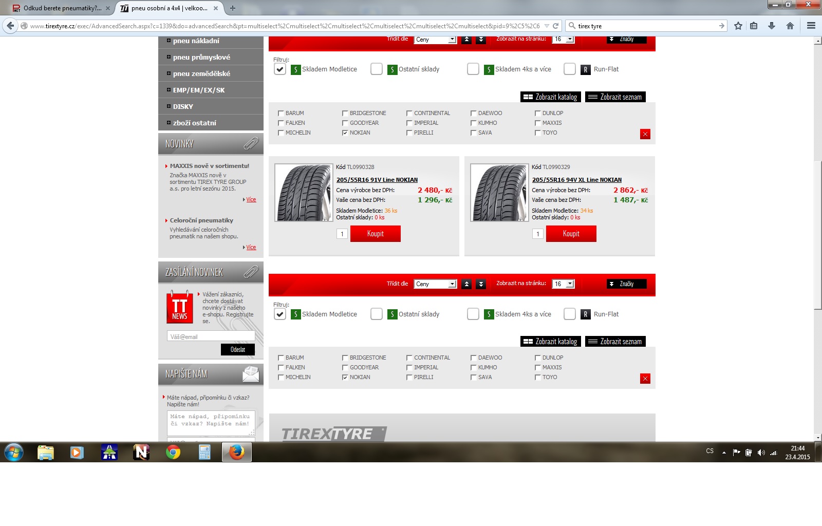 EDIT: Tak nejlevnějšípneu je dražší o pár stovek na kolo, tirex nenakoupím asi, protože to vypadá na velkobchod. Koukám že mi zbývá ta heureka a doprava za pětikilo...