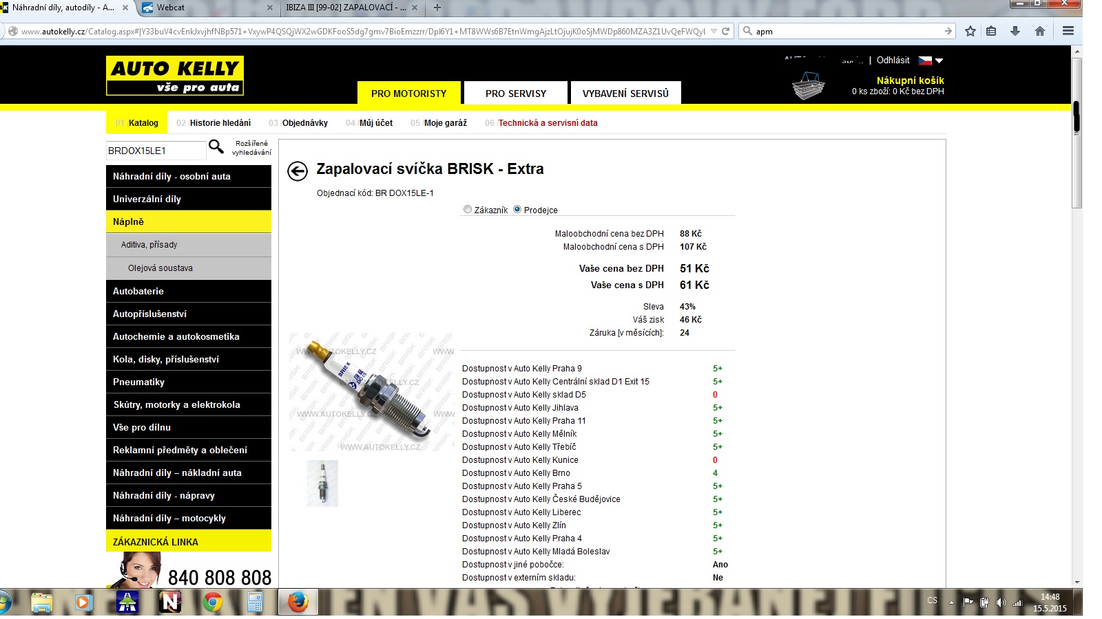 sháním nové svíčky do auta. Hledám a hledám a našel jsem akorát toto: