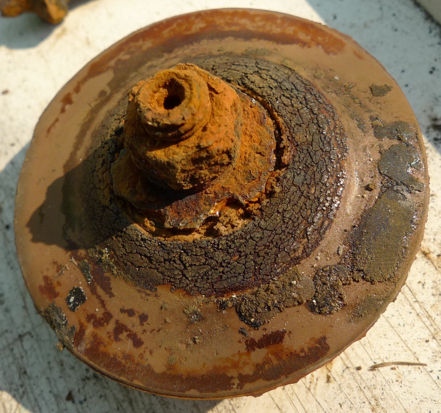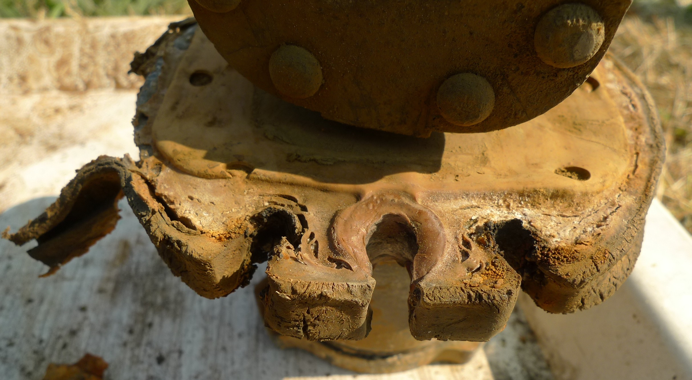do vinutí jsem nezajel nijak zvlášť zhurta. Bylo v tom nános bahna, který šel dobře odloupnout. Oškrabával jsem to lehce. Pravdou je, že bych očekával, že ta plocha bude tak nějak simetricky urovnaná. Jenže ono to vypadá, jako by tam bylo něco polámaného, nebo pozohybaného a připláclé k sobě. viz.obr.P1280655