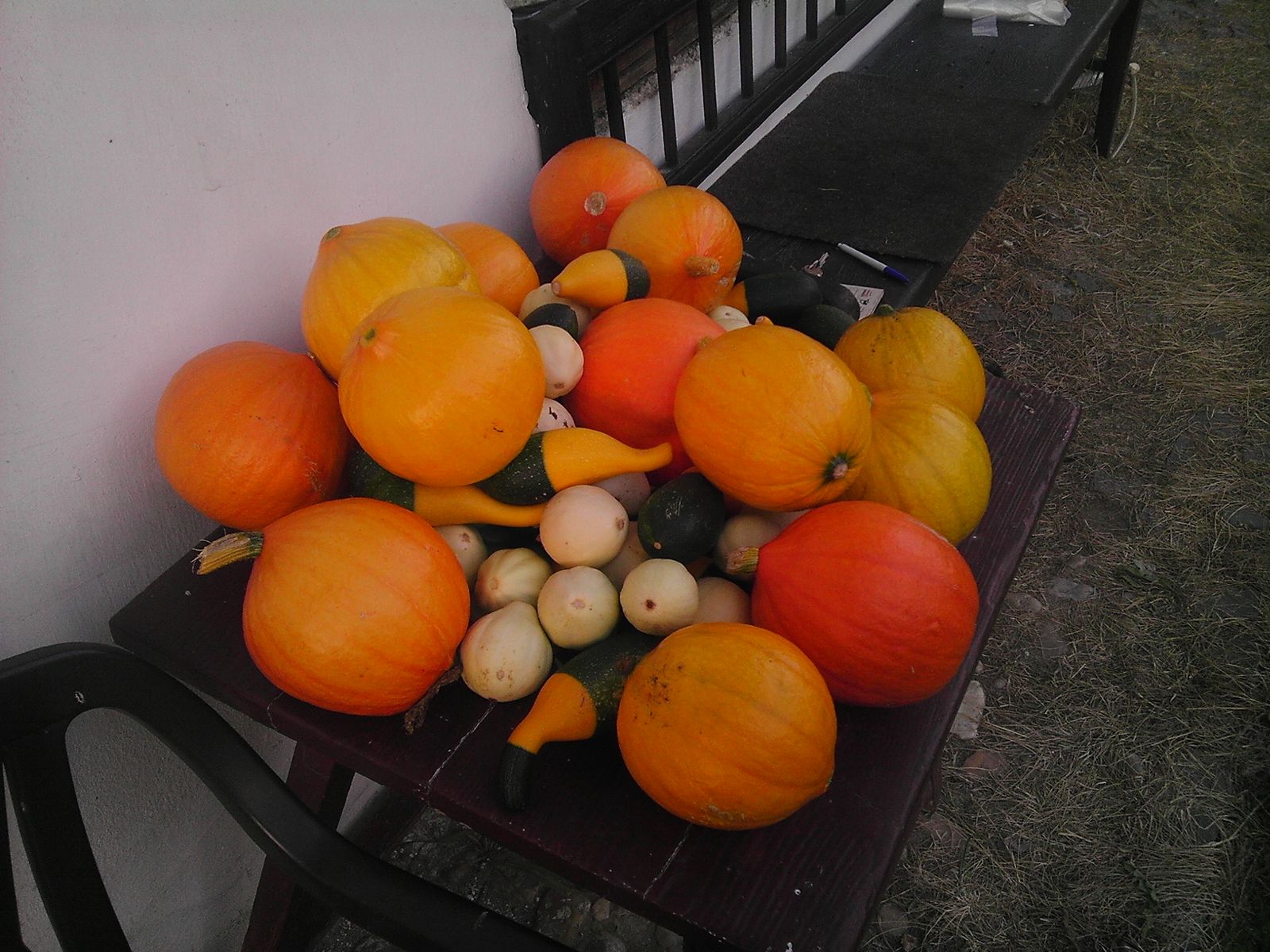 Ahojte. Malinko bych se chtěl pochlubit. Na snímcích je JEDNA JEDINÁ rostlina. Její pokryv čítá odhadem něco přez 30m2. Ještě v první půli srpna jsme mysleli že to jen roste a roste, kvete, ale neplodí. Pak to ale začalo. Na stolku na posledním snímku je polovina dosavadní sklizně a když počasí bude přát, ještě to samé sklidíme. Vše stále z té jedné rostliny. Průměrná velikost menšího házenkářského balonu.