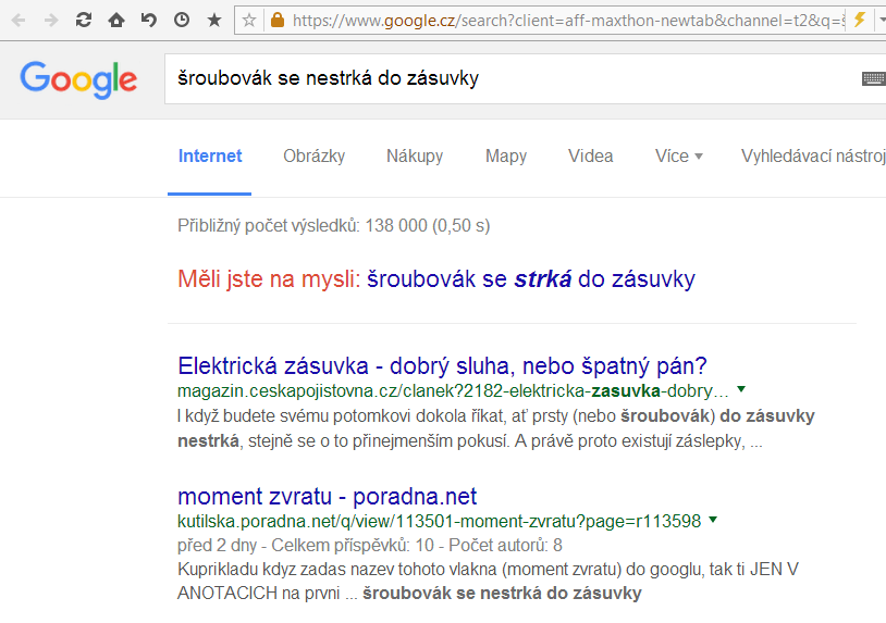 máš tu věty, které se dají porovnat s vyhledáváním.