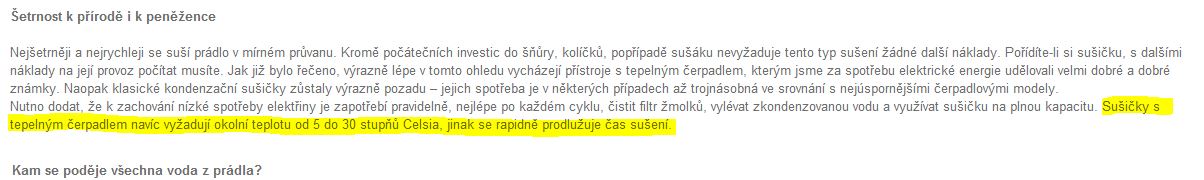 provozní teplota sušičky prádla