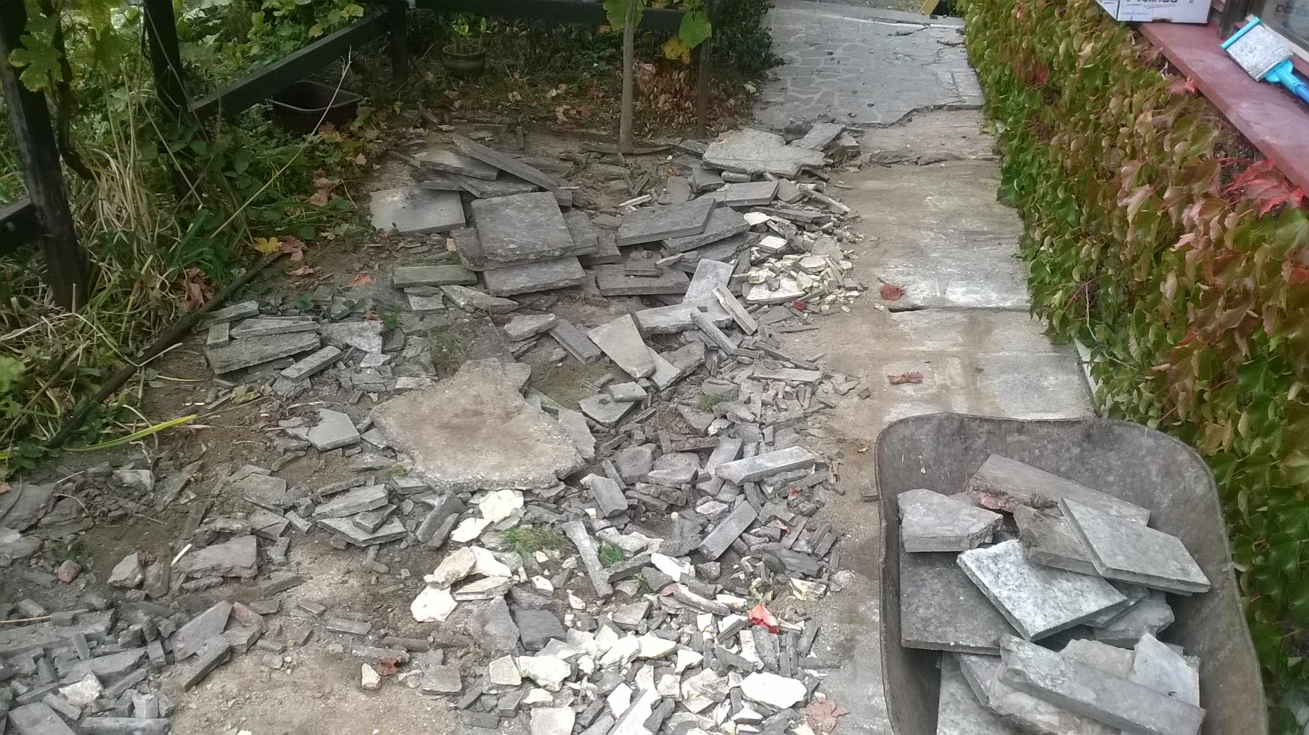 Jinak chtěl jsem se zeptat, mohu nechat takovej ten drobnej bordel co zbyl po dlažbě v té největší prohlubni, abych ušetřil cementu? Ty větší kusy dlažby tam plánuju vrátit zpět až to bude vyrovnané a mezery vyplnit betonem.