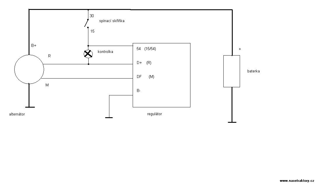 - Podstatné je, že spojení baterie/alternátor, včetně kostry, musí být spolehlivé, protože při odpojení baterie od alternátoru při chodu motoru dojde ke spálení diod uvnitř altíku přepětím. ( Z toho důvodu doporučuji použití dynama - můžete fungovat i bez baterie).