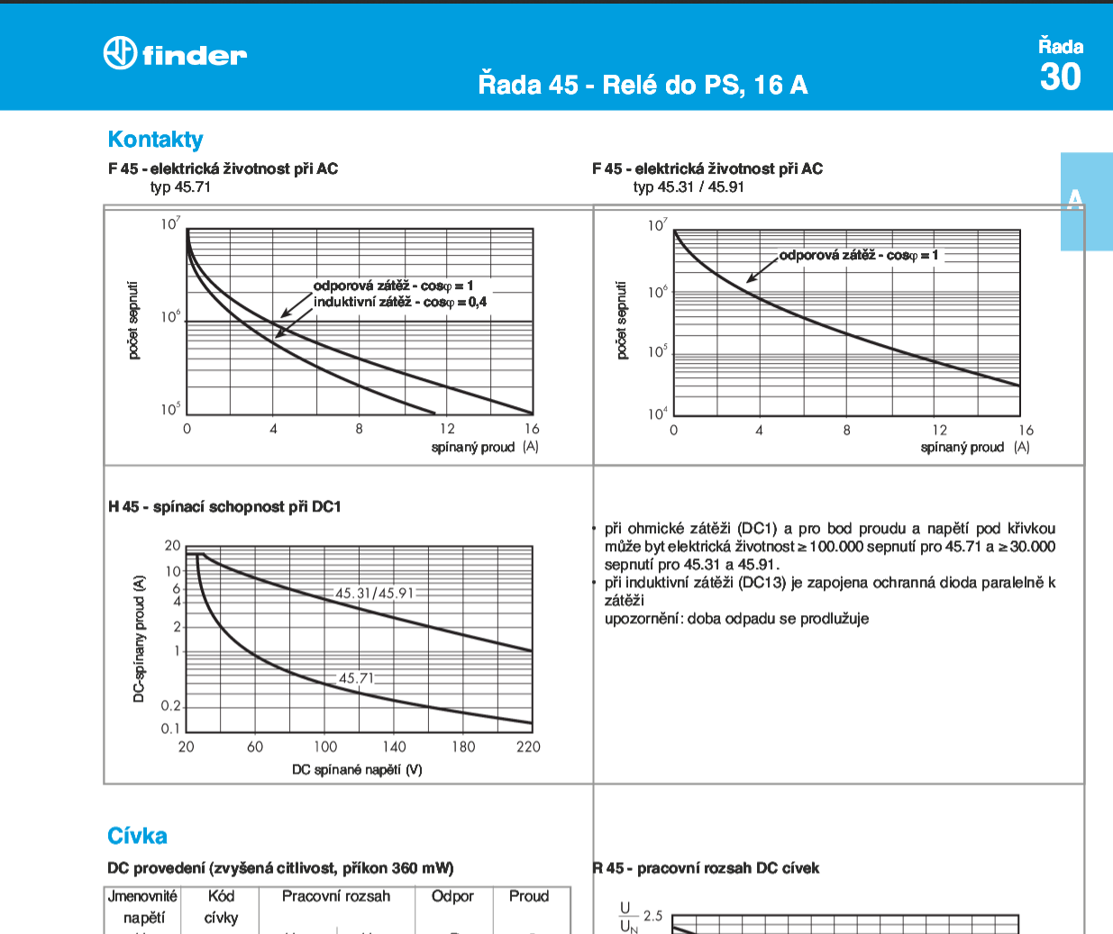 Při AC a odporové zátěži a 16A "prý" 10 na pátou sepnutí(typ 45.71), zato při DC je typ 45.71 výrazně horší, což je logické, mají menší vzdálenost kontaktů, a jak píšeš, oblouk se hezky nerušeně vytáhne.