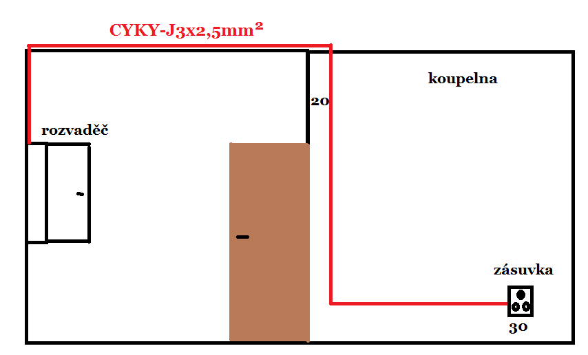 Jako že povedete kabel od strolu k podlaze a pak zase od podlahy do 30? Není jednodušší svét ho od stropu a rovnou ve 30 udělat vývod? Jinak zásuvku pro pračku dáváme ve 115 nebo 130 kvůli přístupu.