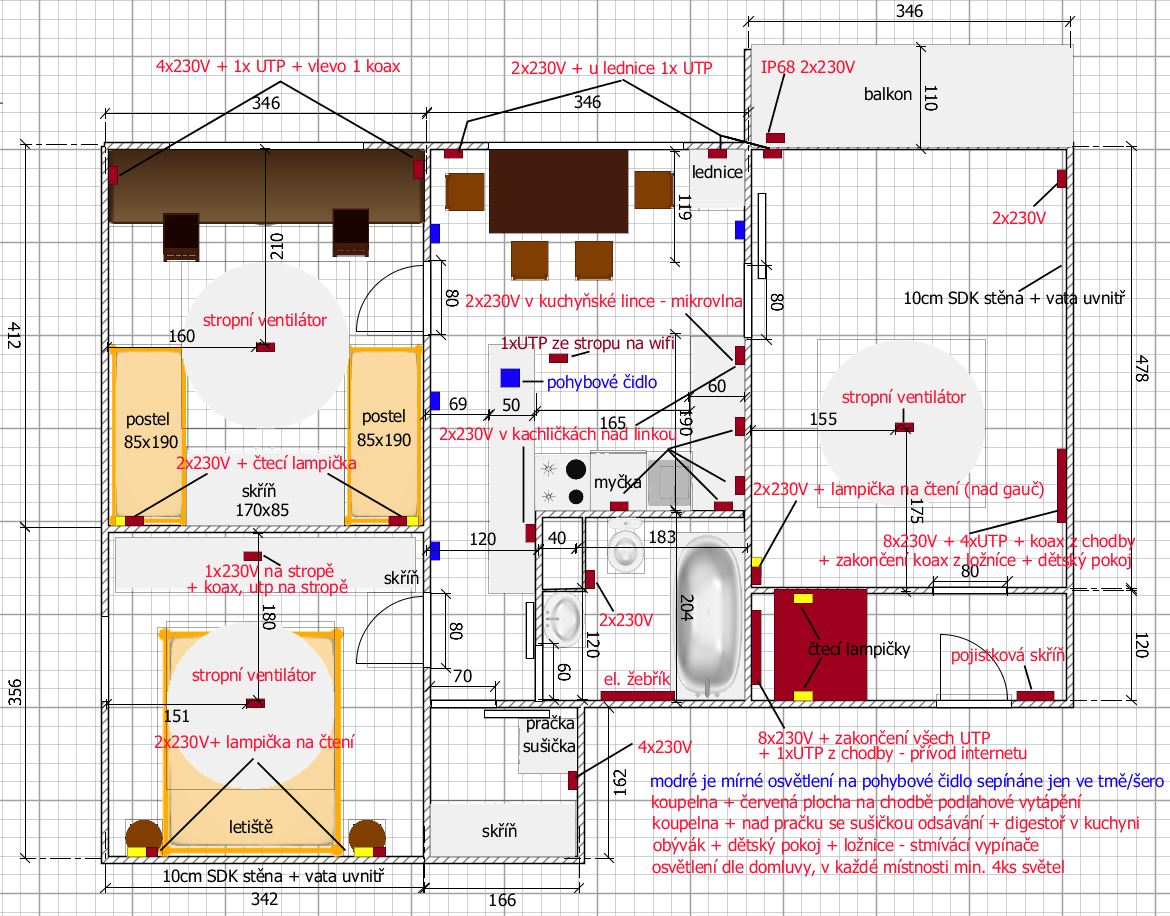 Ale už u stavebních úpravách bych měl zhruba vědět, co chci koupit, kvůli rozměrům. Což tak nějak vím - digestoř, indukční deska 4plotýnky, trouba, vetší lednice, pračka+sušička, 2tv, stereo repro + zesák + BD přehrávač, mikrovlnku již mám.