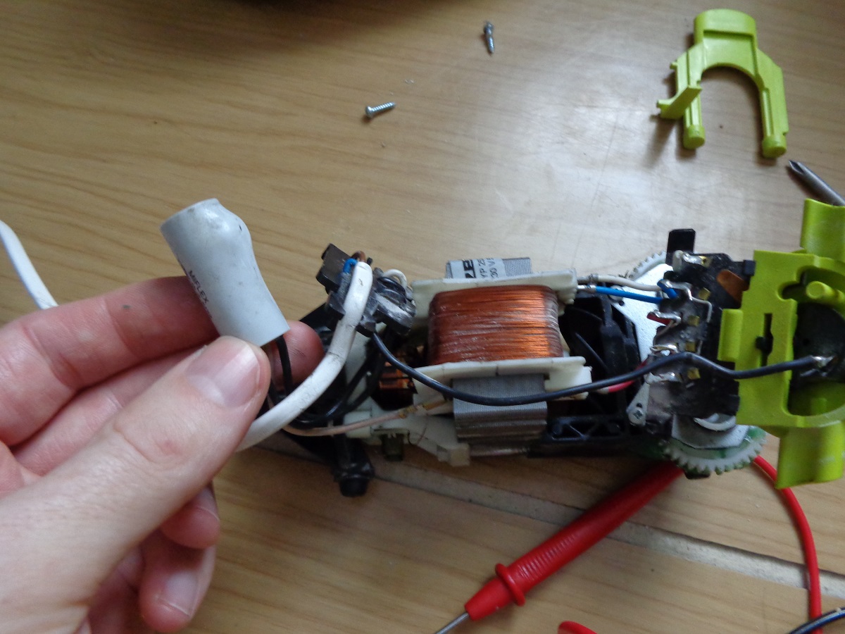 z Mixéru Zelmer 481.6 se zakouřilo a už nejede. Po rozebrání to odhaduji na vadný kondenzátor, je asi nafouklá, takhle se asi nevyrábí. (foto) Musí tam ten kondenzátor nutně být (nevylepšuje jenom učiník?), co kdybych ho odštípnul a zkusil jestli se mixér nerozjede. Nebo tam musí být? Kolik může stát nový? Jestli pár korun, tak bych to risknul i když může být v háji i něco dál a bude to zbytečná investice. Díky.
