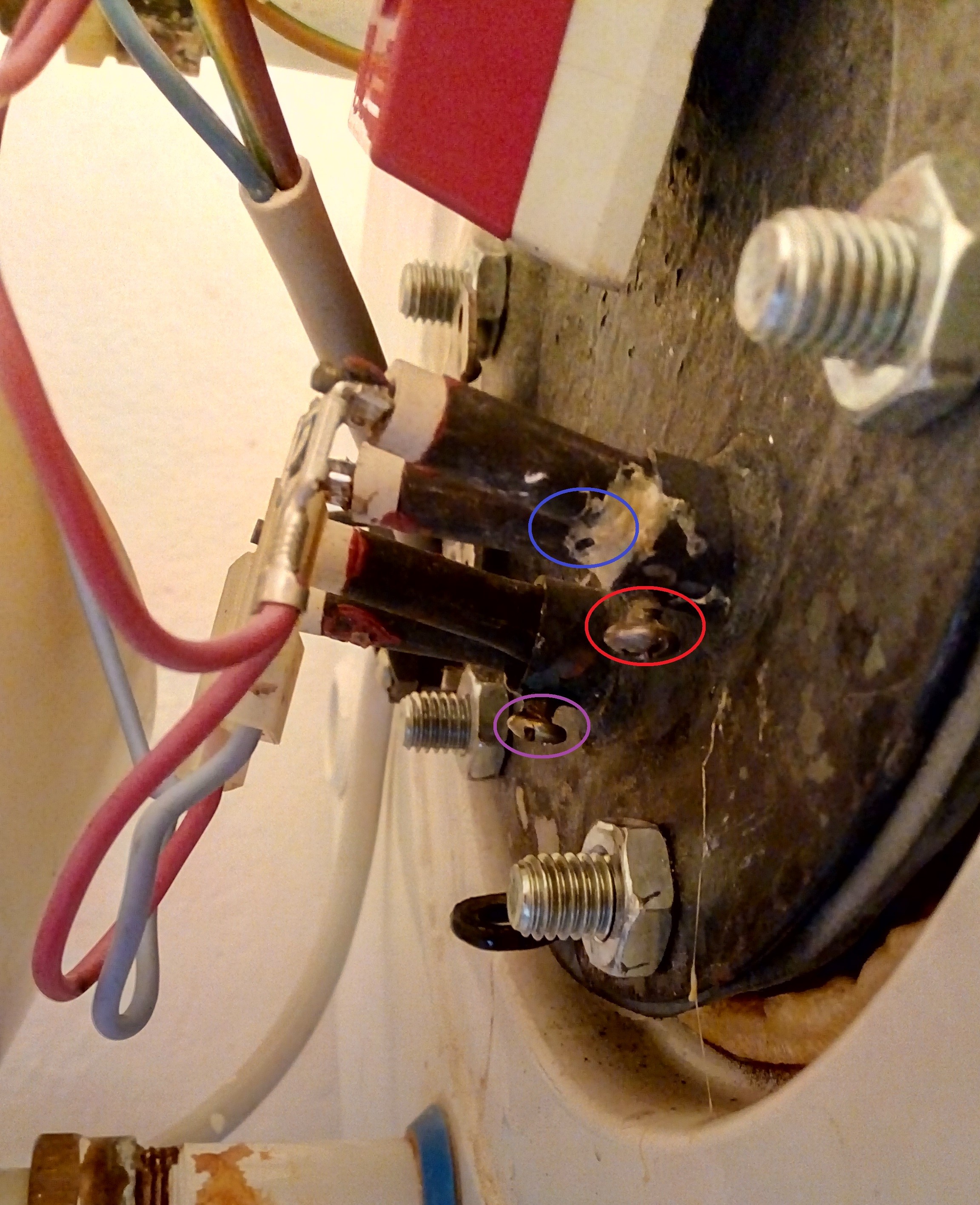 Byt je obýván téměř dva roky a dosud nebyl žádný problém. Stáří ohřívače bohužel neznám a mohu zjistit až v příštím týdnu. Najednou začalo z bojleru kapat. Zjistil jsem tedy konkrétní místo (červené označení na obrázku). Vůbec nemá vliv, zda teče voda, zda se ohřívá či zda není puštěná vůbec. Ohřívač jsem měl i samozřejmě vypnutý ze zásuvky. Jde o stejný průběh ve všech možnostech. Interval kápnutí je cca 4-10 minut, takže nic velkého. Musím říct, že když jsem si toho všiml (muselo to kapat chvíli), ohřívač vydával poměrně zvláštní zvuky. Myslel jsem si tedy, že by to mohlo být tlakem, že se srovnává. Nicméně 24h poté to stále, přibližně ve stejné míře kape. Je možné, že to ještě nějaký den potrvá a pak bude klid?