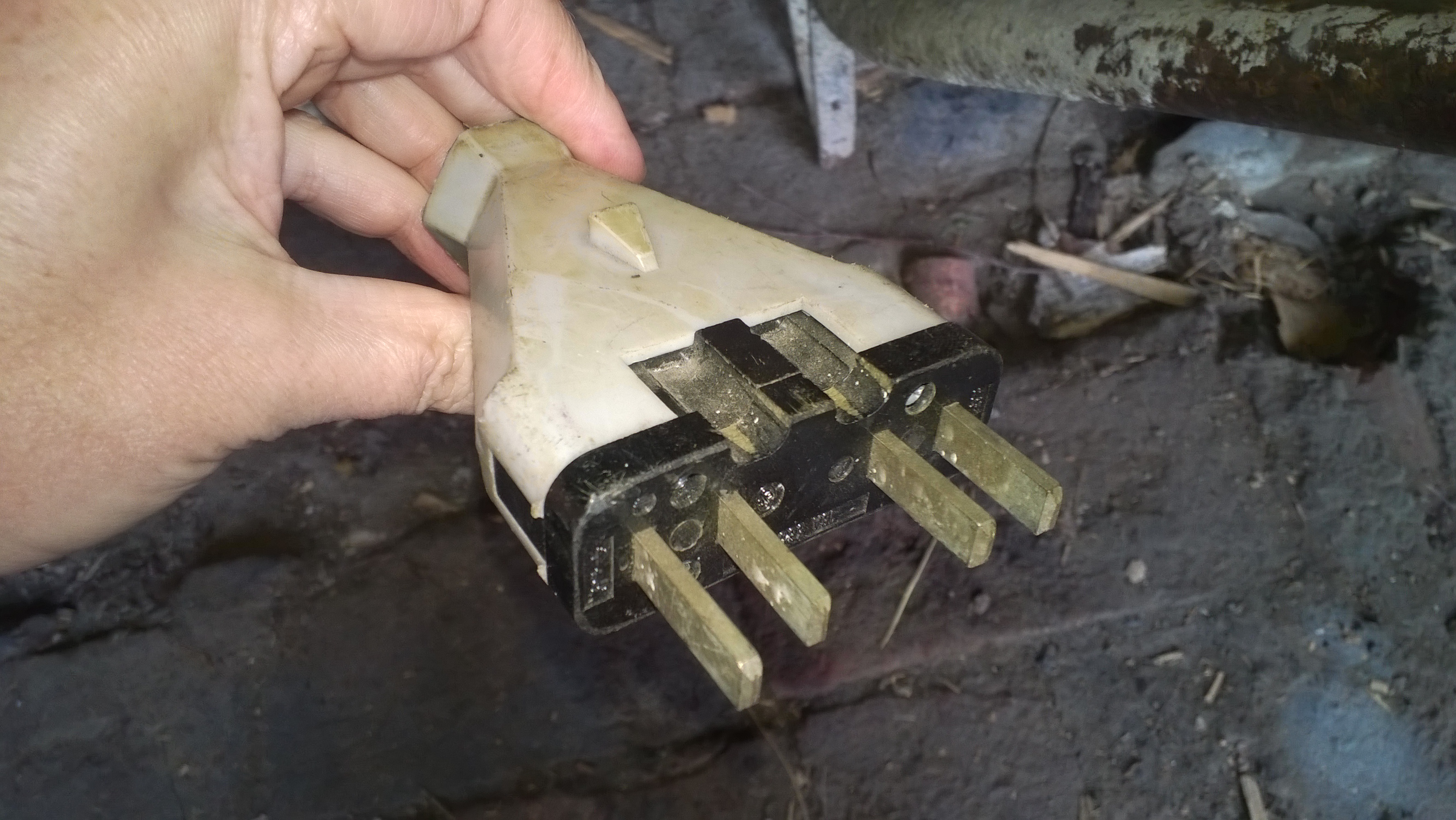 mám na rozbrušovačce starou 4kolíkovou plochou zásuvku (viz obr) a chtěl bych jí vyměnit za nou kulatou 5kolíkovou, ale když jsem jí rozdělal není tam žádnej popis zapojení, tedy pořadí fází a nula. Na barvy drátů se taky nemohu spolehnout a nikde jsem na netu nenašel schema zapojení. Nechci to dělat stylem pokus-omyl, nerad bych spálil motor nebo něco jiného.