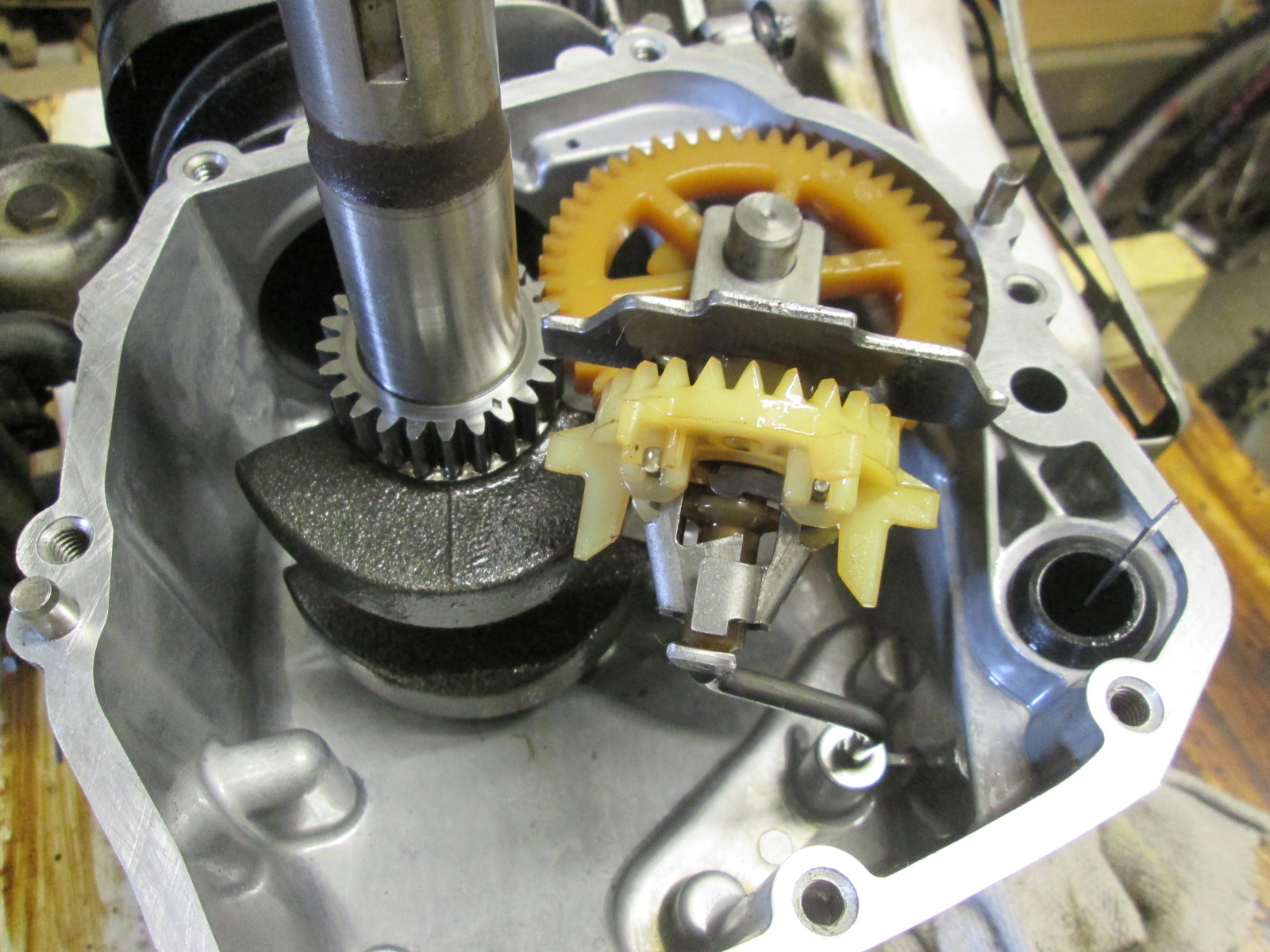 tak je vše jinak.Z vašich fotek není vidět vůle pod čerpadlem mezi klikovkou,podle odkazu,který posílám tam je místa dost.Okolo desáté minuty vidíte díl,který vypadl podrobně jak nasadit zpět.