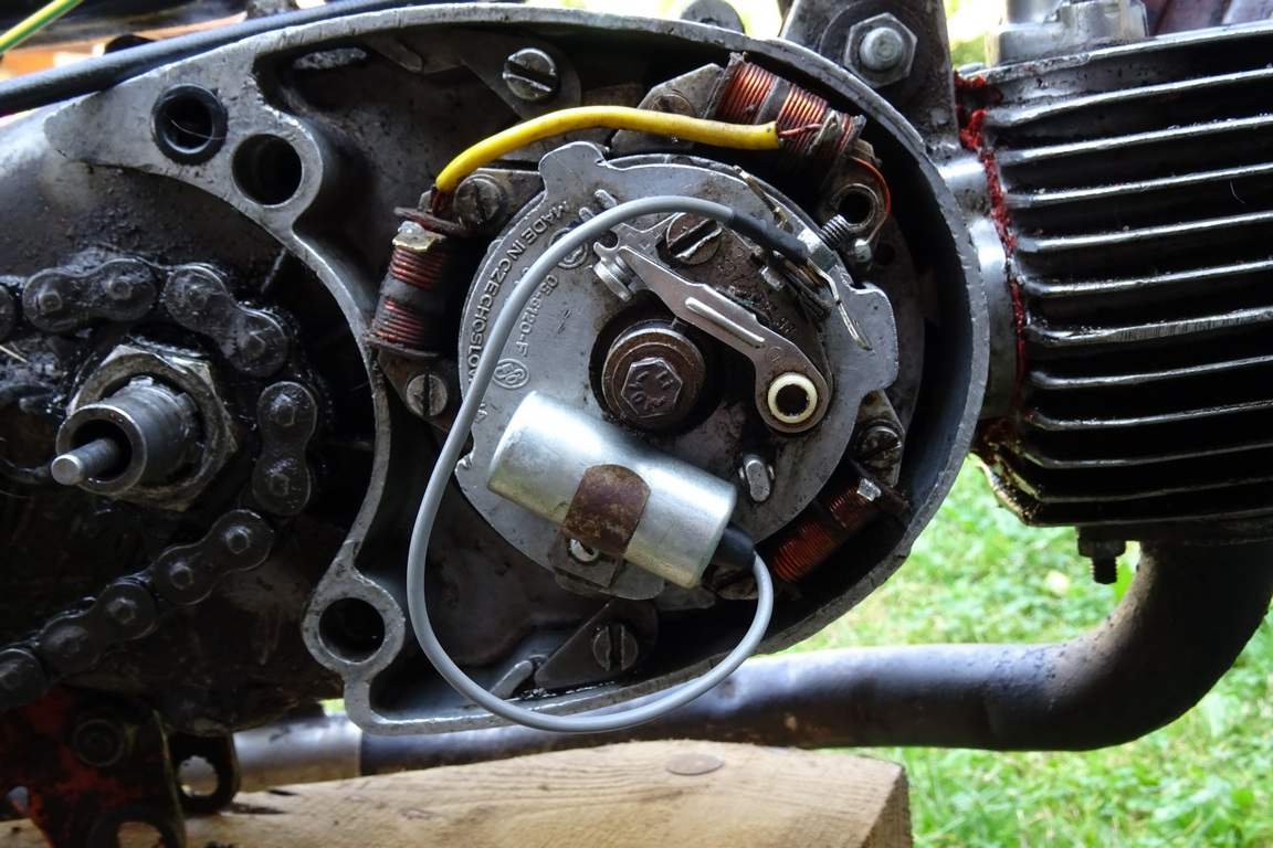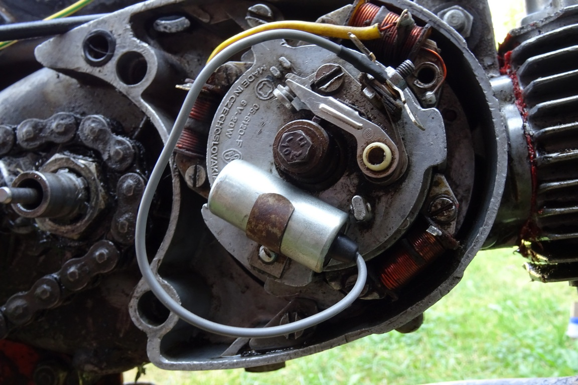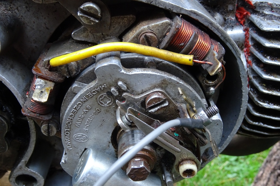 Potřeboval bych poradit - nevím, zda jsou u pionýra správně zapojené kabely na zapalovnání - hlavně ten žlutý (viz foto), zapalování neháže jiskru (zkoušel jsem svíčku z jiného která je funkční), indukční cívka je tam nová.