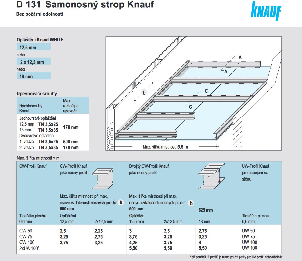 Pokud nelze zavěsit strop, je D 131 jediné řešení, bez prohnutí.