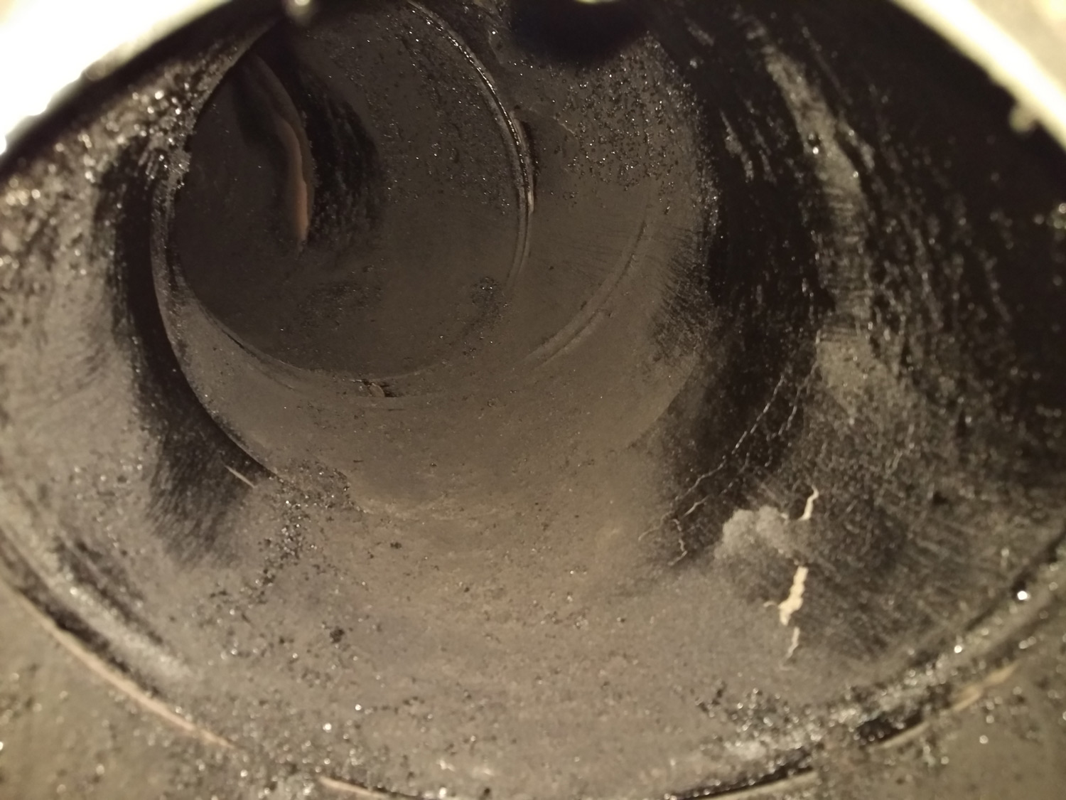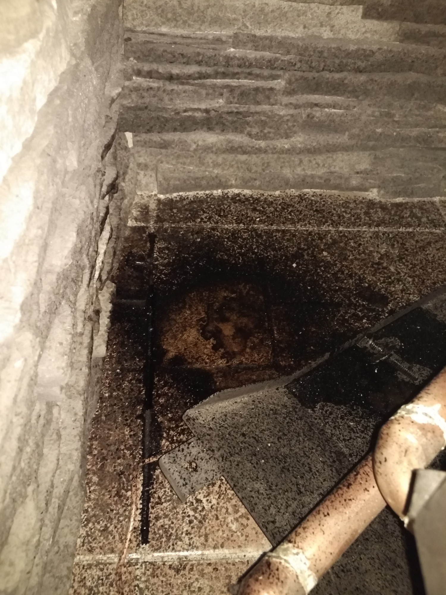 Vymetal jsem právě tím otvorem co je vidět na fotce vodorovně i svisle kam sjem dostal.. svisle až do krbovek, vodorovně kam sjem dostal.. jestli se neak nemohl zaseknout otvor mezi svislou trubkou a krbovkami... primo u napojení? spadal tam bordel? ale t by zase vypadl do krbovek...