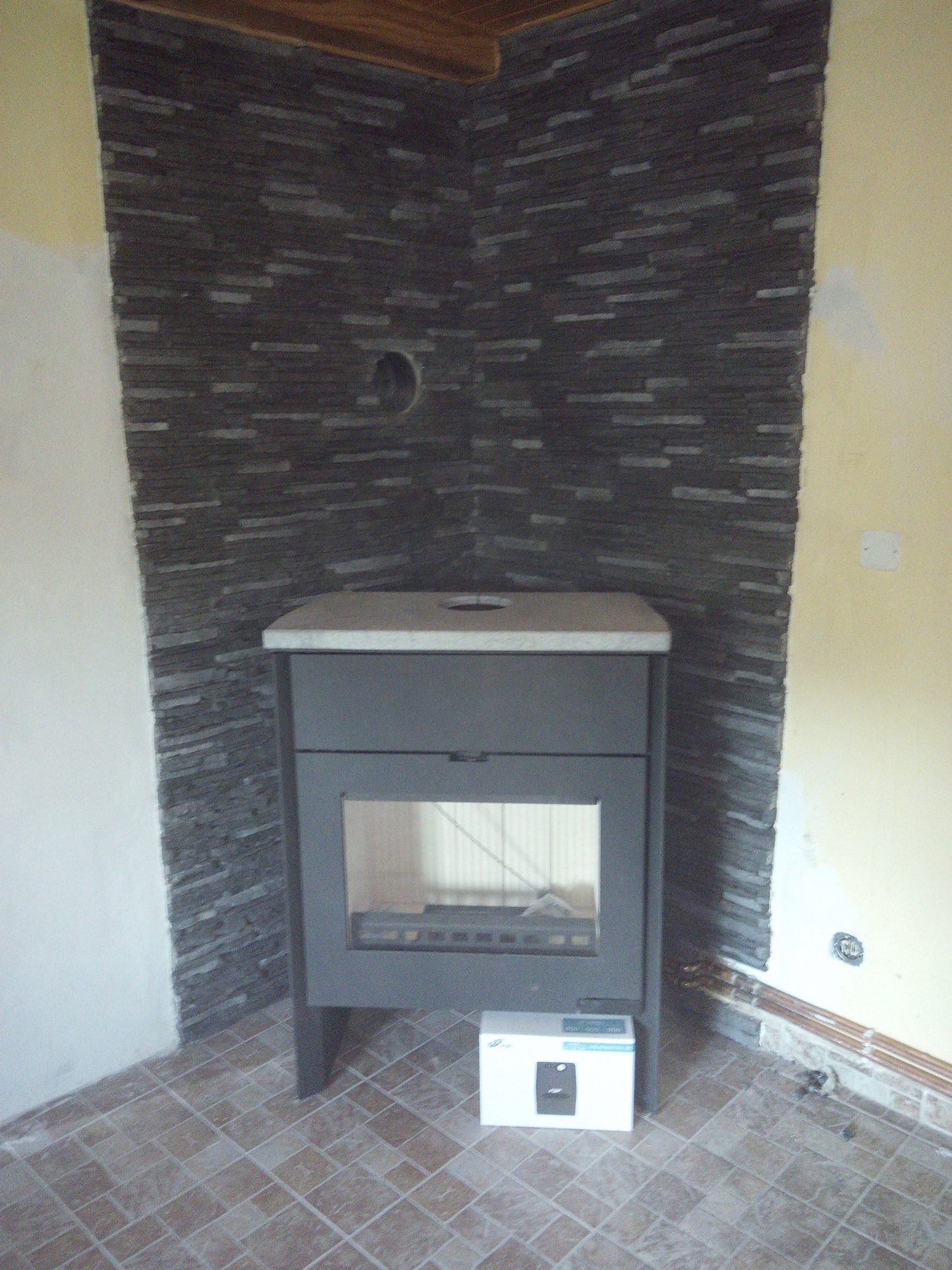 4) odkapany "bordel" za krbovkama z napojení spojů do komína -. zřejmě dehet - otázka je čím pustí z dlažby..:(