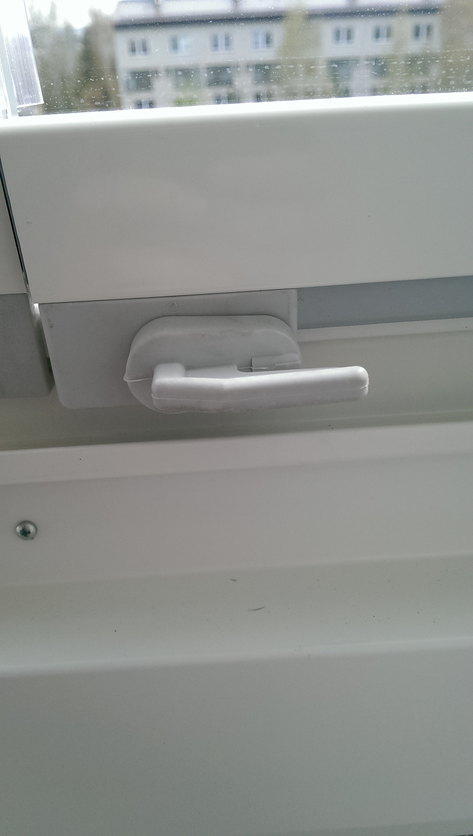 Nejdříve jsem mysle že zmíněná věc bude jistojistě onen šroubek vlevo, ale nakonec jsem rozklíčoval že by to měla být klika veprostřed. Tušit bude jedině ten, kdo montoval, takže nezbyde než si sednout ke googlu, vyhledat všechny firmy které se zasklíváním lodžií zabývají a obeslat je poněkud lépe formulovaným dopisem i s fotkou a ke všemu doufat že se díl dá ještě sehnat a není už dáávno vyřazený z výroby.