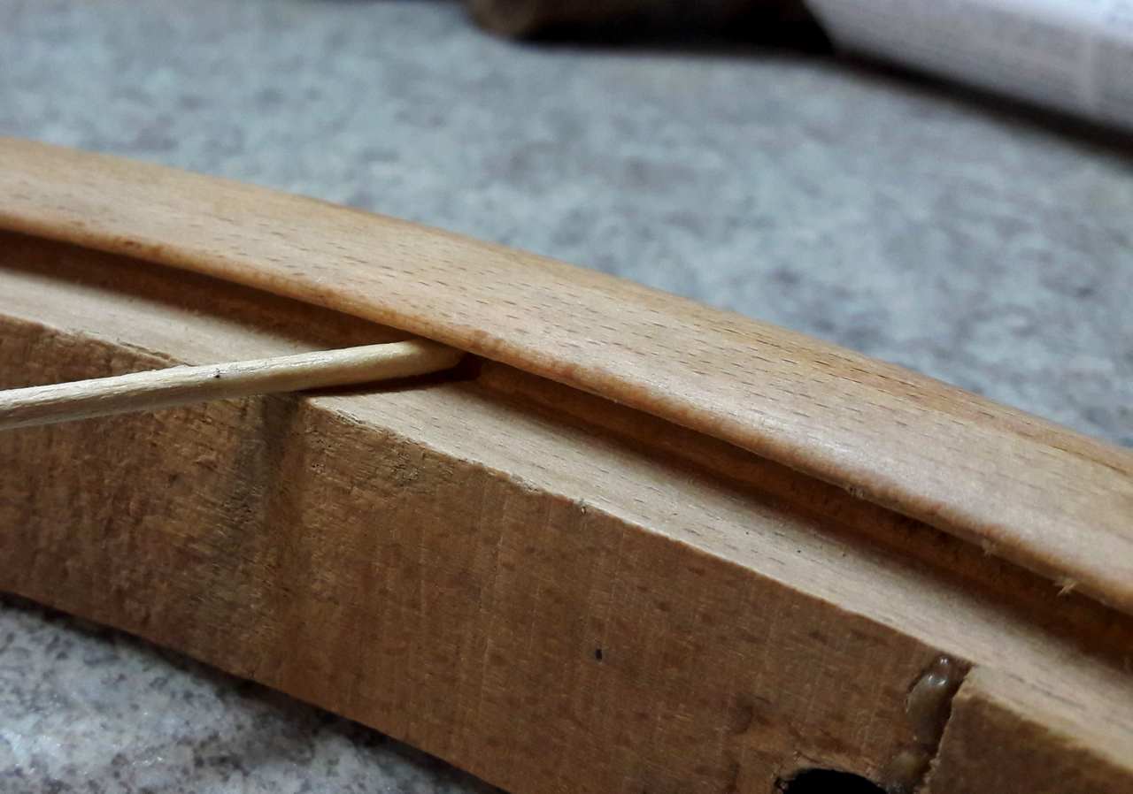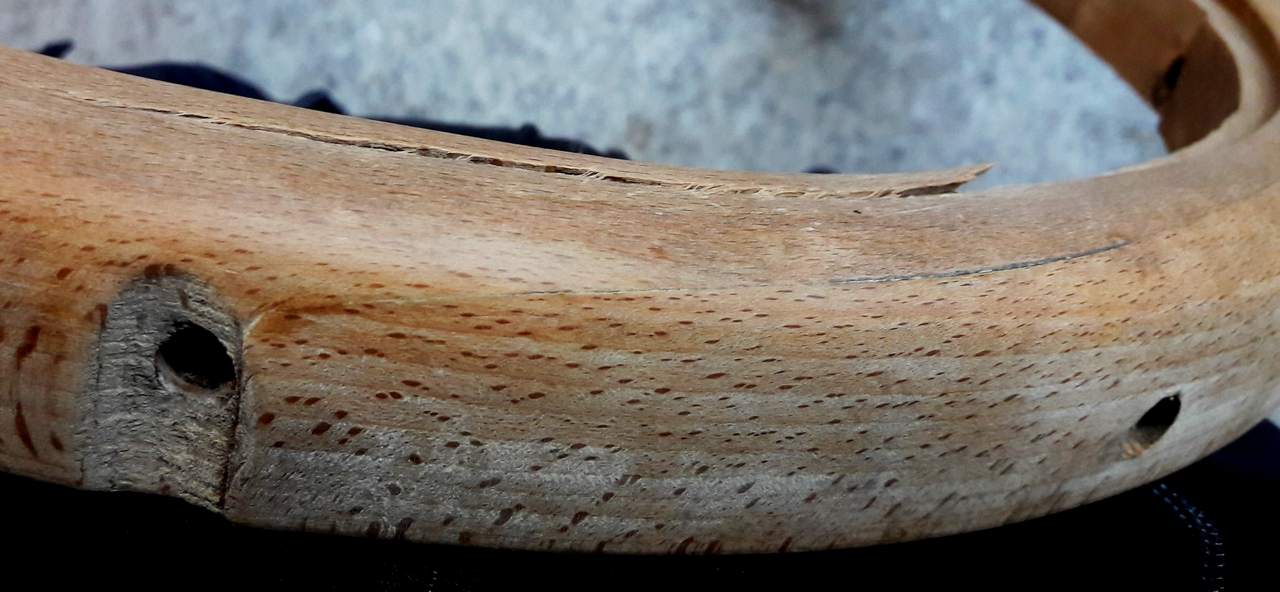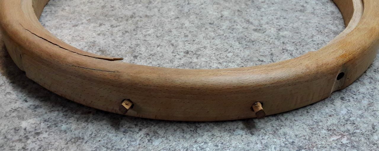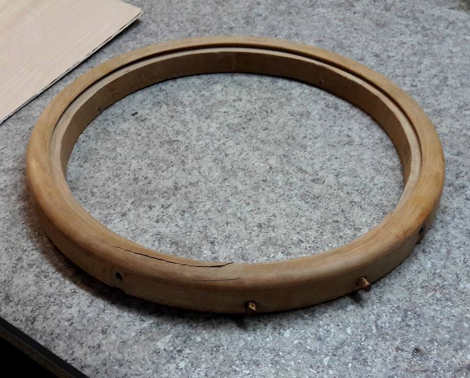 pustil jsem se do renovace dřevěných židlí. K dokončení zbývajících židlí potřebuji vložit nové sedáky do kruhového rámu se zapuštěným "lem", který je hluboký 4-6mm. Ohýbaný rám sedáku je slepený a zajištěný kolíčky, které jsem již vyťuknul. Předpokládal jsem, že po vyndání kolíčků, se mi podaří slepovaný rám sedáku rozlepit, ale nepodařilo.