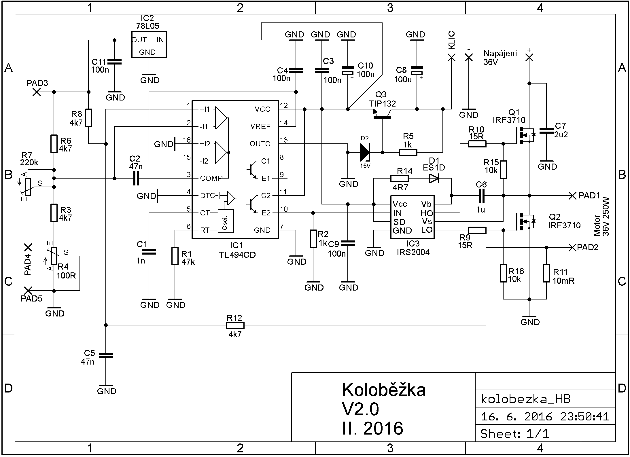 Ale abych jen neryl. Udělal bych to hezky postaru - potenciometr a za to nějaký budič složený třeba z MOSFETů. Navíc pokud chceš opravdu regulovat otáčky motoru, musíš regulovat proud motorem, jinak budou otáčky závislé na zatížení, což moc chtěné není. Ovšem aby jsi mohl regulovat proud motorem, potřebuješ proudovou zpětnou vazbu a opět se to komplikuje. Kdysi jsem něco podobného stavěl na elektro-koloběžku. Můžeš si to upravit a použít. Na piny "PAD3", "PAD4" a "PAD5" se připojuje libovolný potenciometr. Dvěma trimry jde následně nastavit max. proud motorem a rozsah od minima do maxima otáček. Funguje to spolehlivě.